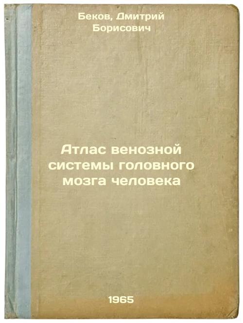 Short description: In Russian. Bekov, Dmitry Borisovich. Atlas of the Venous System of the Human Brain. Moscow: Medicine, 1965. Atlas venoznoy sistemy golovnogo mozga cheloveka. In Russian /Atlas of the Human Brain Venous System . The image is provided for reference only. It may reflect condition of one of the available copies or only help in identifying the edition. Please feel free to contact us for a detailed description of the copies available. SKU5963333