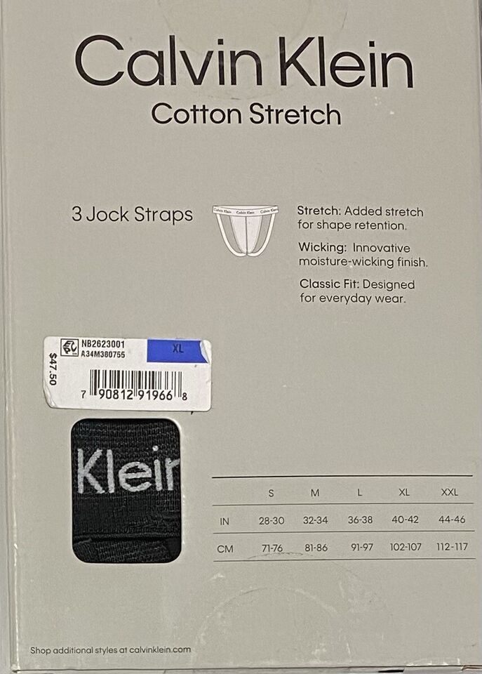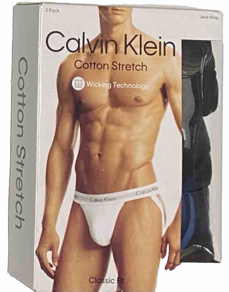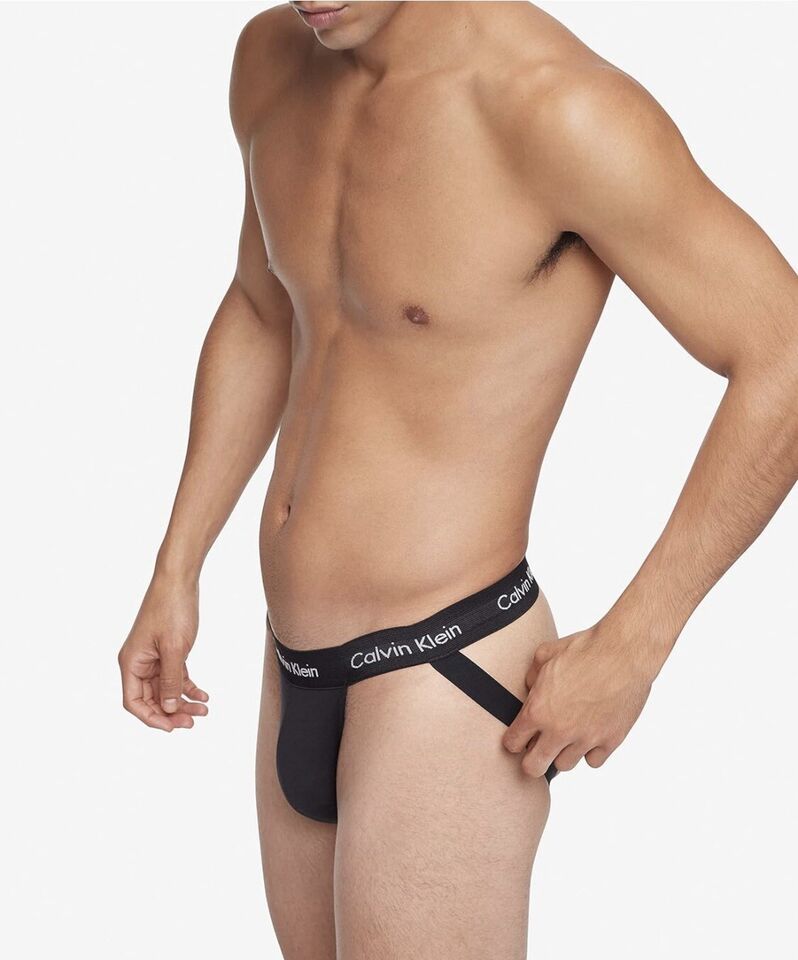 Calvin Klein 3 Men's Cotton Stretch Jock Straps Black X-Large 40-42 NB2623