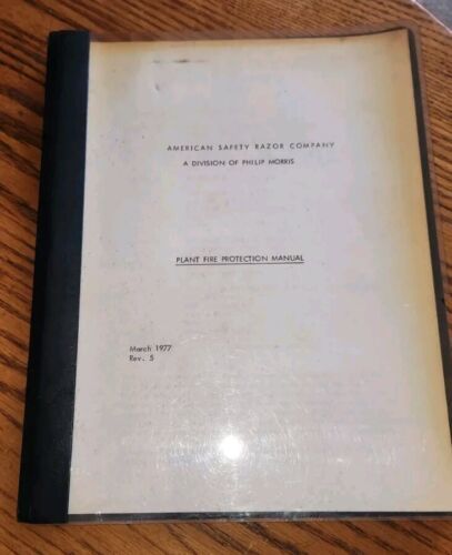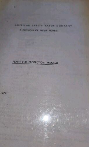 The product is a vintage American Safety Razor 1977 Plant Fire Protection Manual from a Philip Morris Division. This manual likely contains important information and guidelines for firefighting and rescue procedures within the plant, focusing on ensuring the safety of employees and protecting the facility from potential fire hazards. With its historical significance and collectible nature, this manual could be of interest to those in the firefighting and rescue field or those who collect memorabilia related to fire safety.