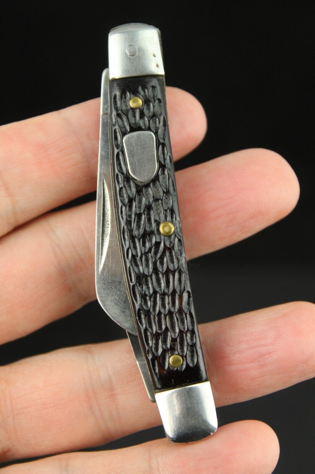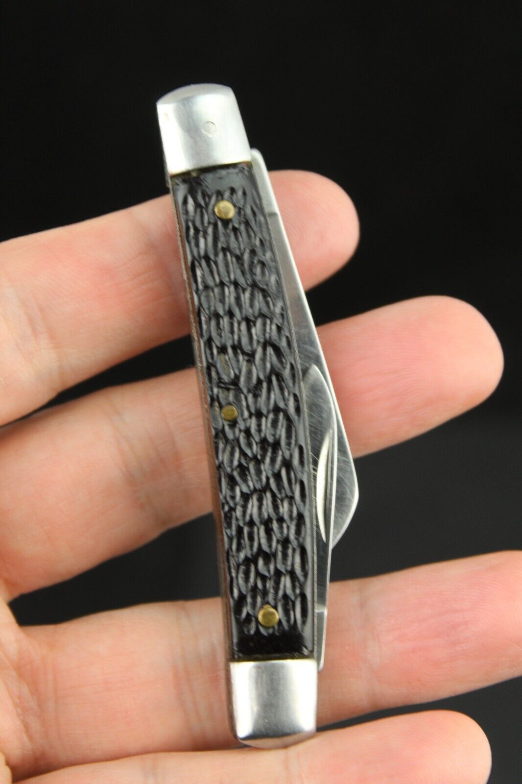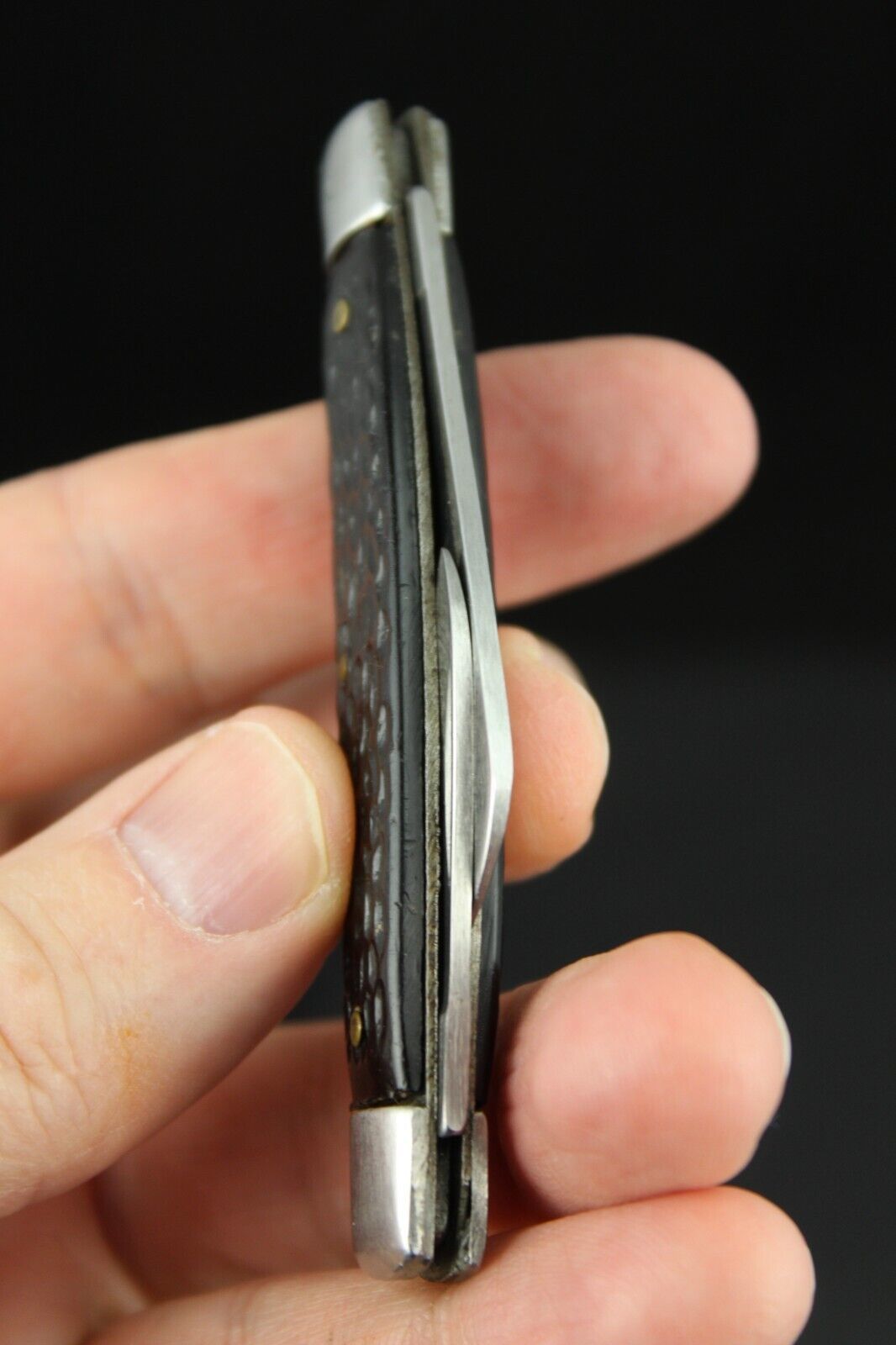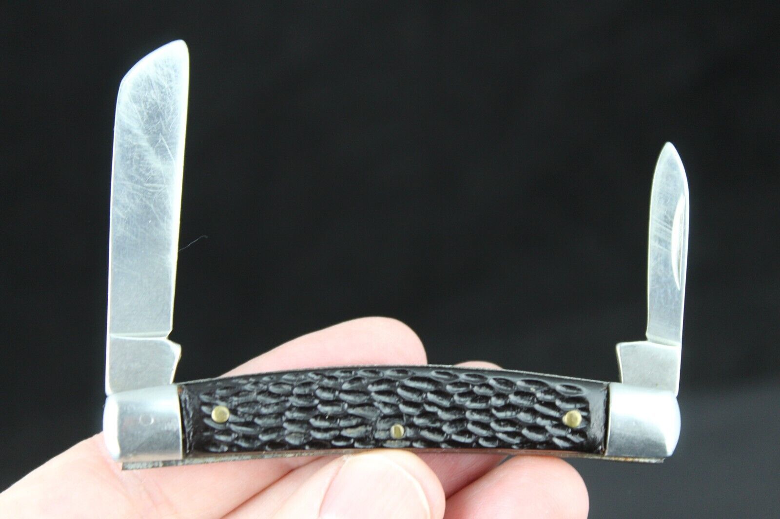 vintage pocket knife Sabre congress 2 blade jigged black stainless Japan delrin