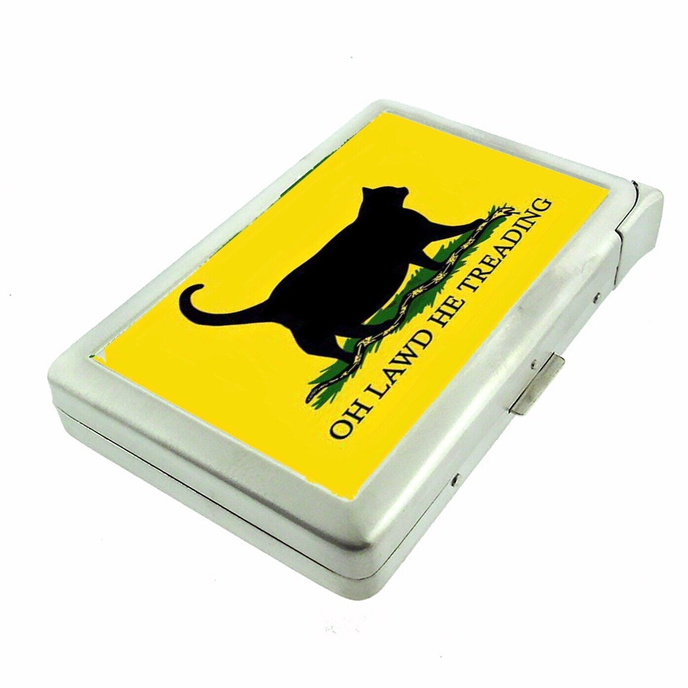 black cat oh lawd don't tread Cigarette Case w/Built in Lighter Metal Wallet