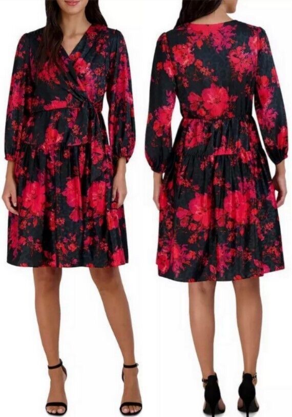 Signature by Robbie Bee Women Petite Floral Cocktail Party Satin Dress (10P) NWT