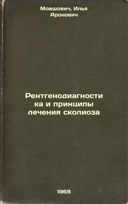 Short description: In Russian. Movshovich, Ilya Aronovich. Radiodiagnostics and principles of scoliosis treatment. Moscow: Medicine, 1969. Rentgenodiagnostika i printsipy lecheniya skolioza. In Russian /Radiology and Principles for the Treatment of Scoliosis . The image is provided for reference only. It may reflect condition of one of the available copies or only help in identifying the edition. Please feel free to contact us for a detailed description of the copies available. SKU7377476
