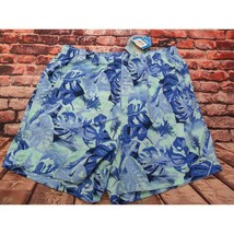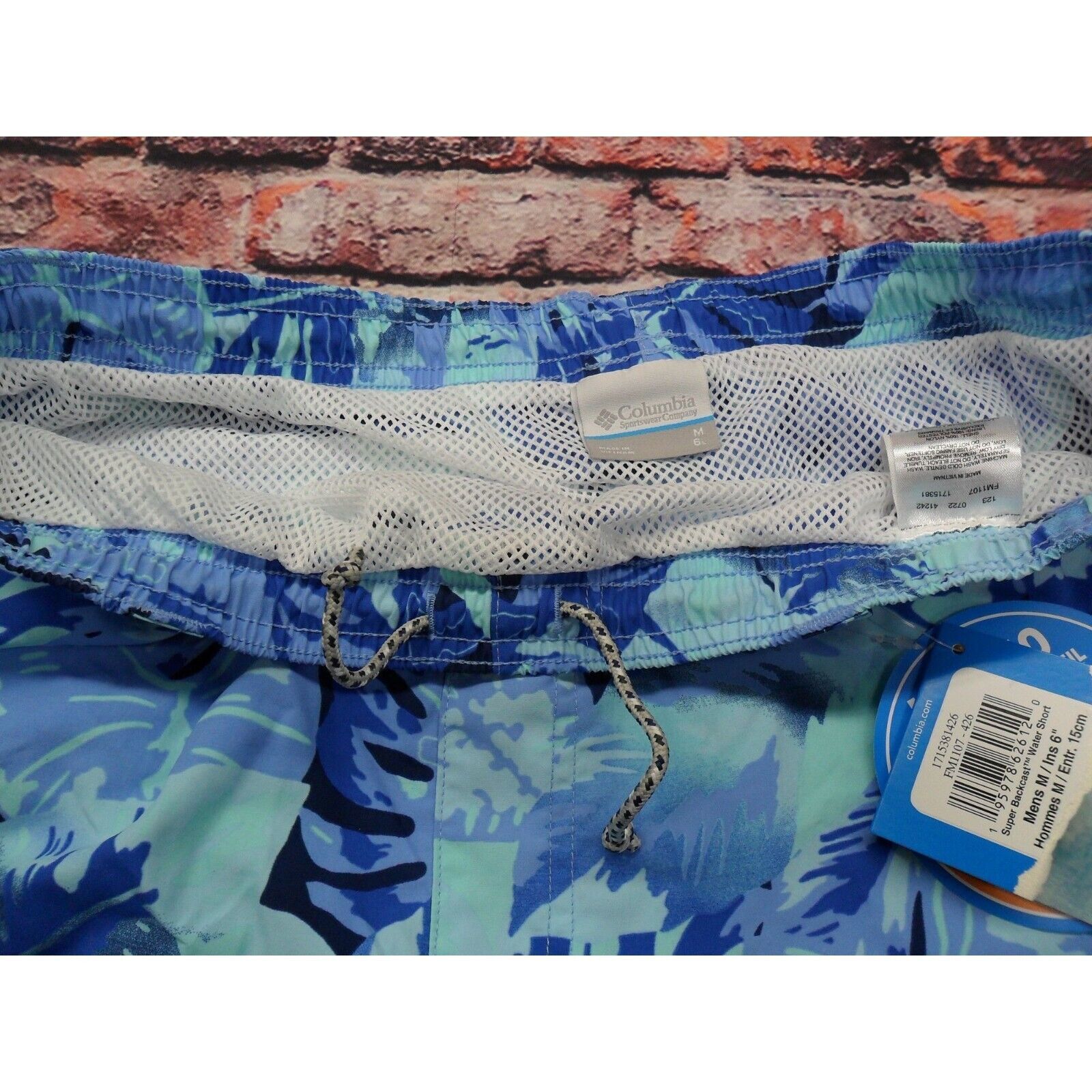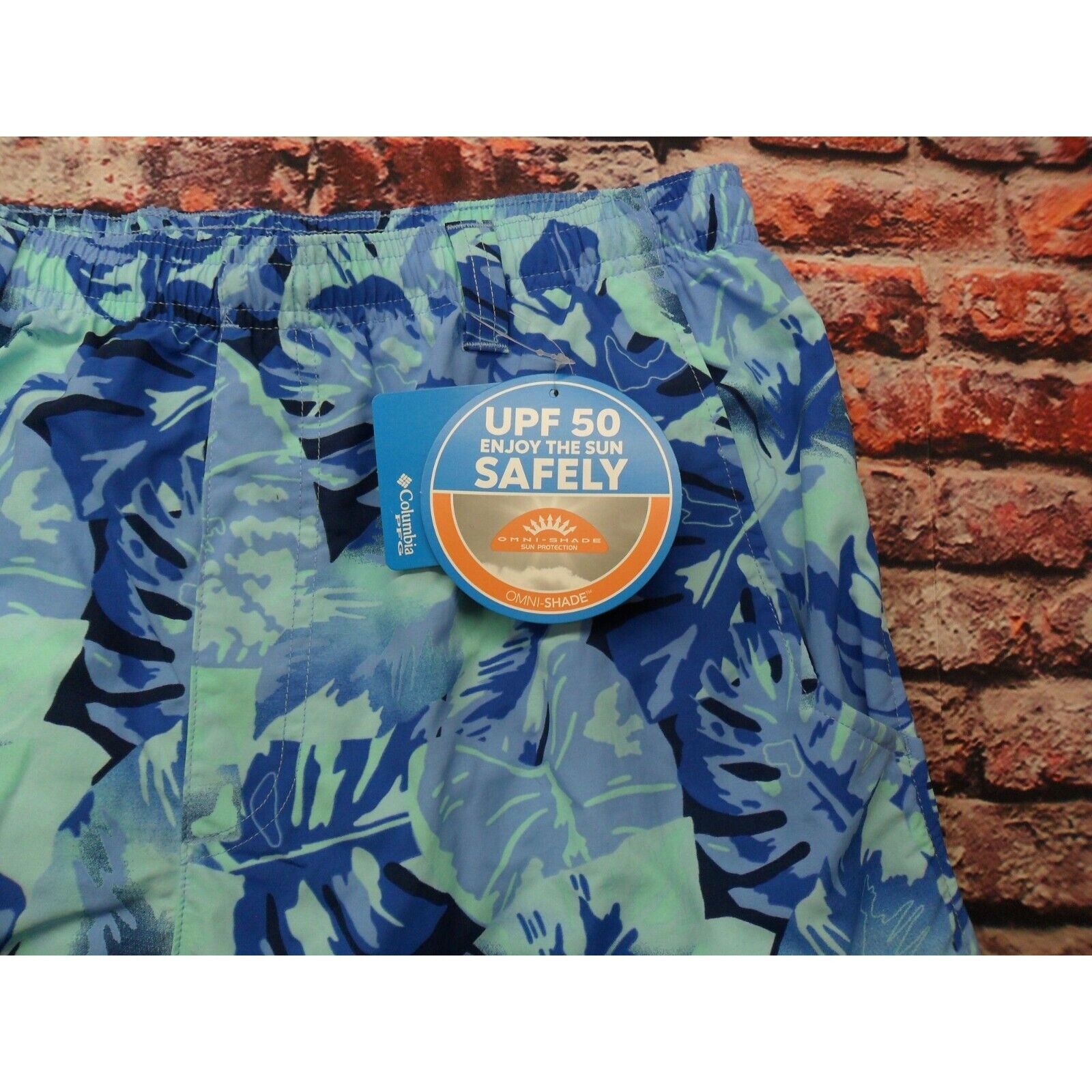 Columbia Men's UPF 50 Swim Trunks M 100% Nylon Blue Leaf Print Mesh Lining