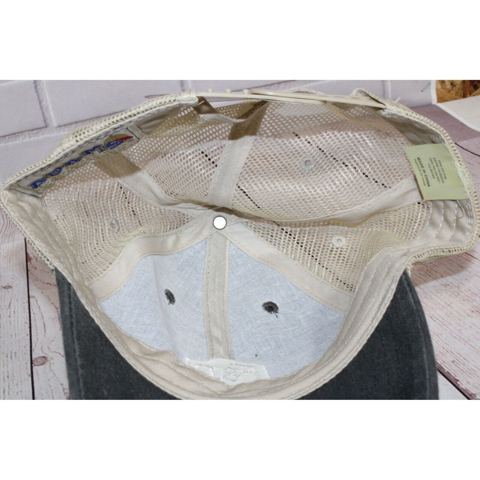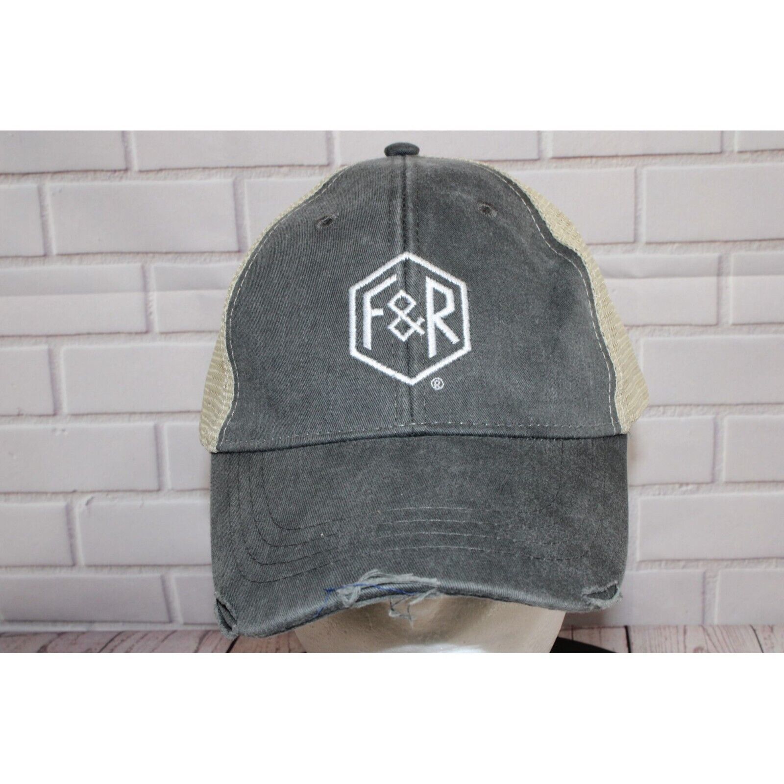 NWT ADAMS F&R Trucker Hat Distressed Gray & Beige Mesh Cap Adjustable Snapback