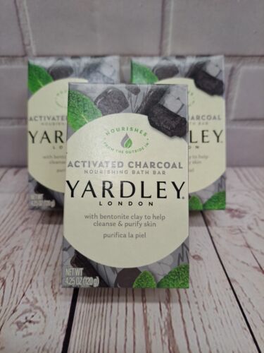 (3) Yardley Activated Charcoal Bar Soap Lardley London Nourishing Bars 4.25 oz