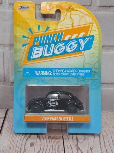 Introducing the Jada 1:64 Punch Buggy Slug Bug Volkswagen Beetle in black, a special edition diecast car model from Jada Toys. This unopened box is a must-have for collectors and fans of the Volkswagen brand. The model is a 1:64 scale replica of the classic Volkswagen Beetle, with intricate details and a sleek design.