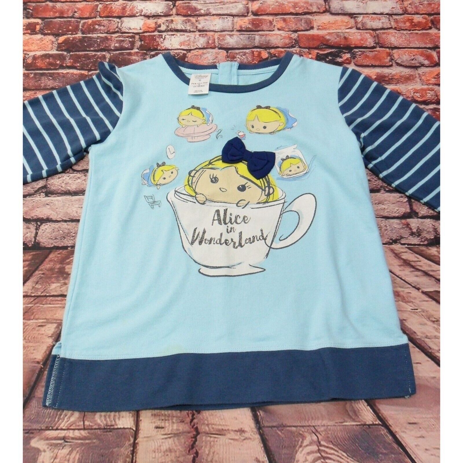 Disney Store XS Alice In Wonderland Long Sleeve Shirt For Girls Blue & Navy