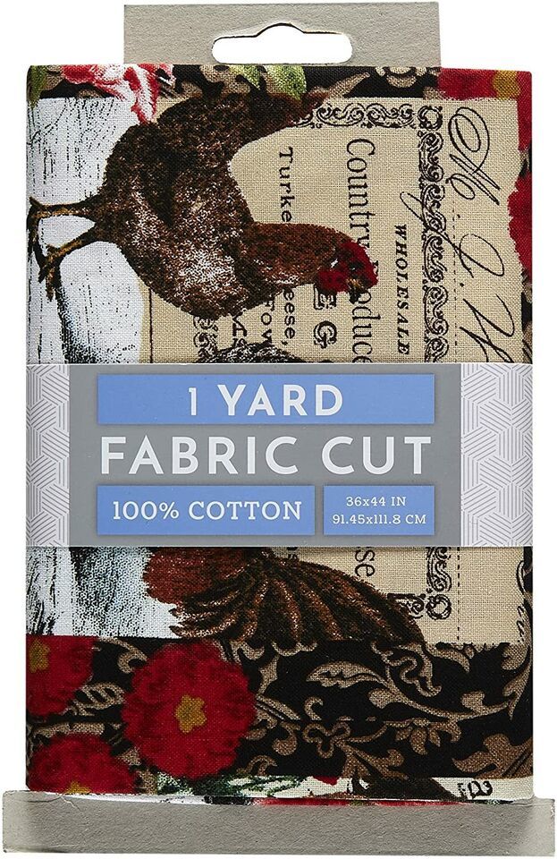 1 Yard Piece - Country Farm Chickens Roosters Farmhouse 36" x 44" Precut Cotton Fabric Piece (DX-0156-PC-1)