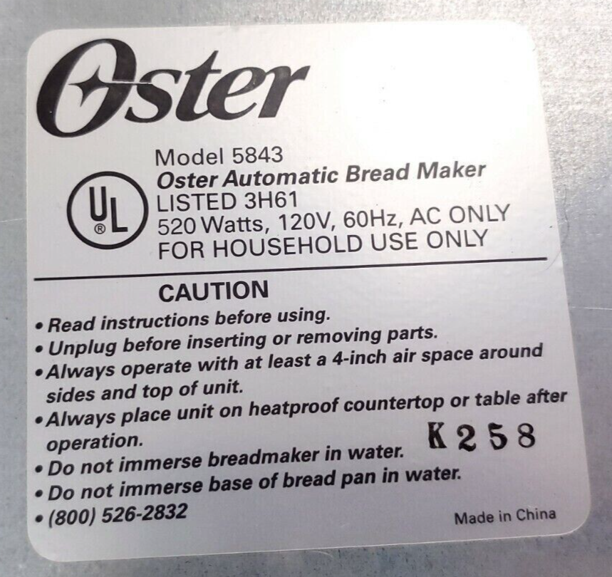 Kneading Blade Paddle for Sunbeam Oster Bread Maker Model 5843 only (S16TL)