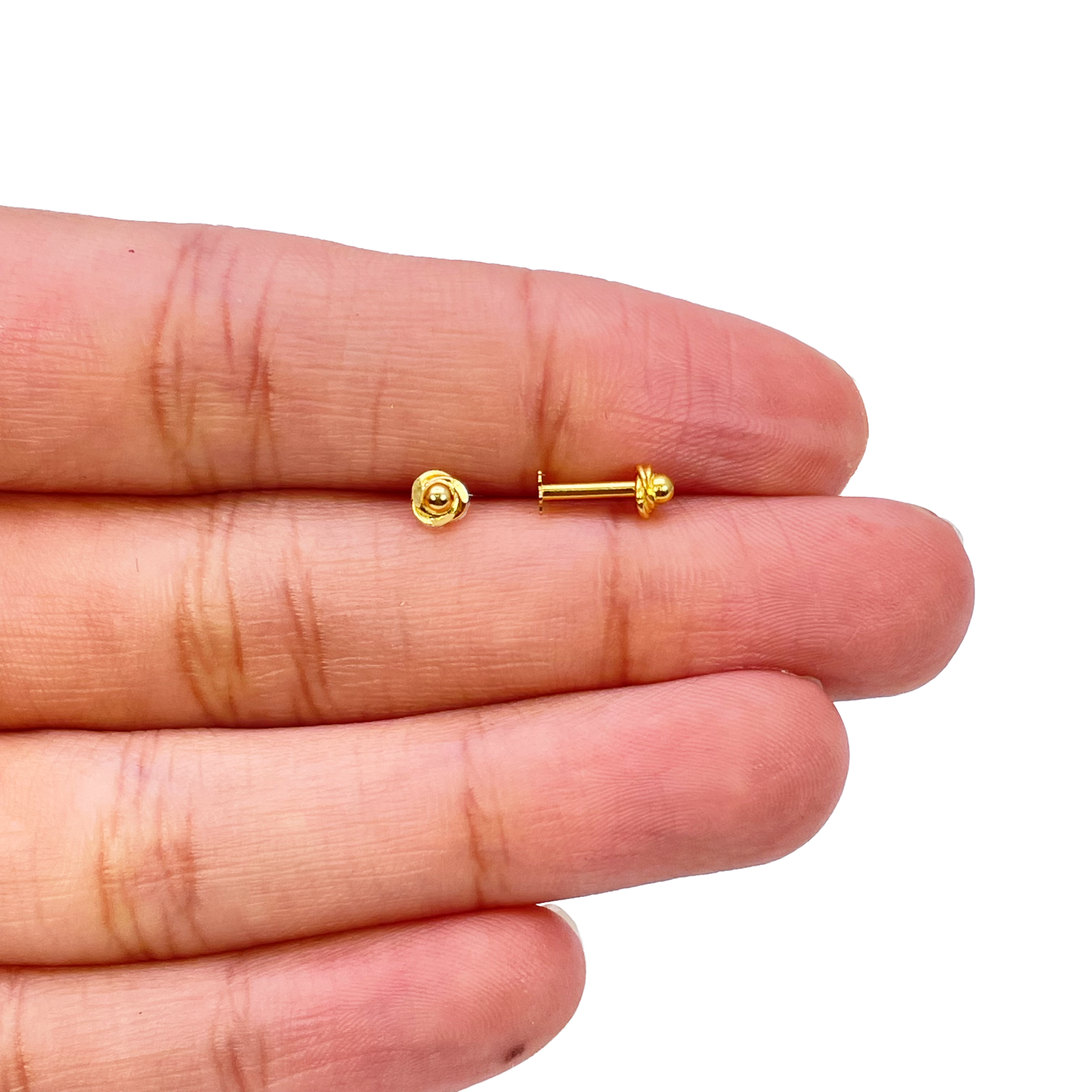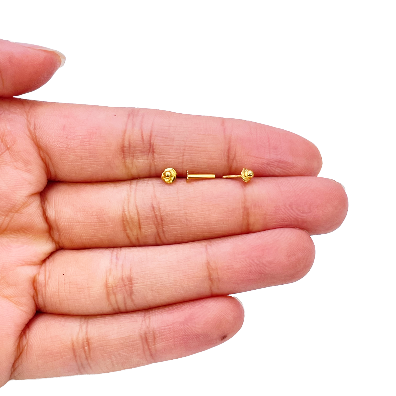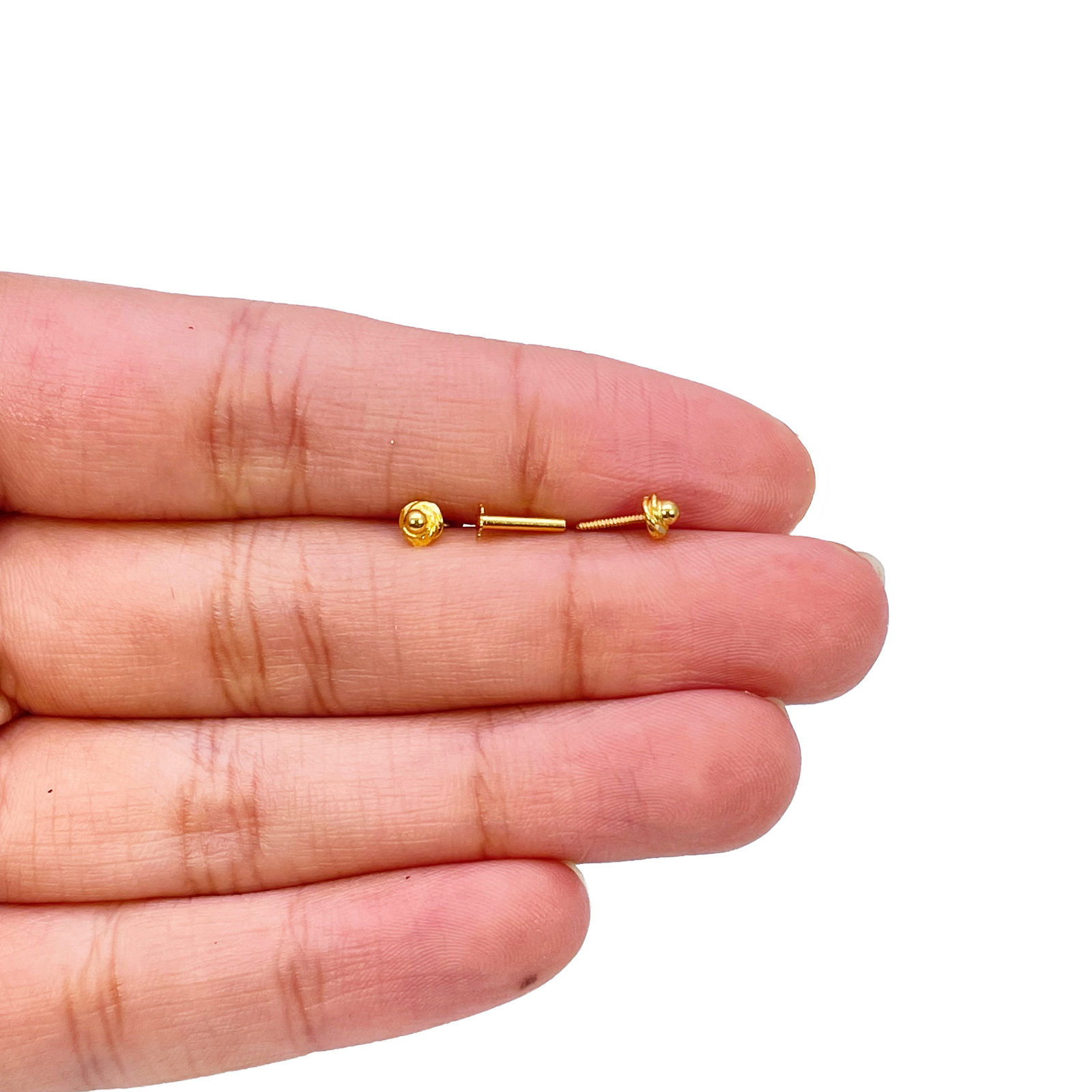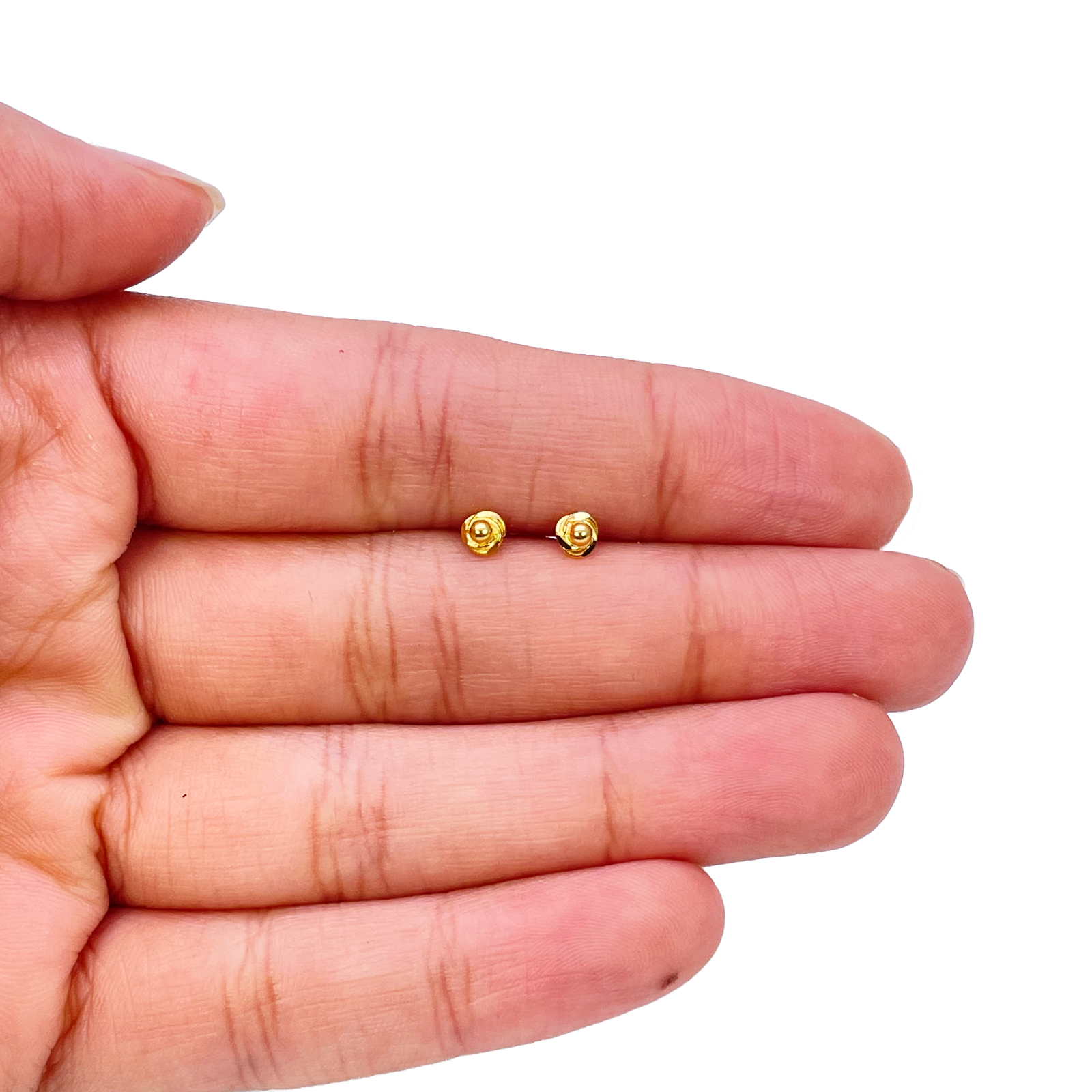 22ct Yellow Gold Plain High Polished Rose Children's Earrings 3.5mm Width