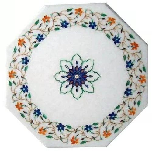 Elegant Octagon White Marble Table Top Exclusive Stone Furniture & Decorative