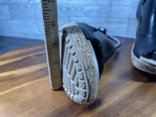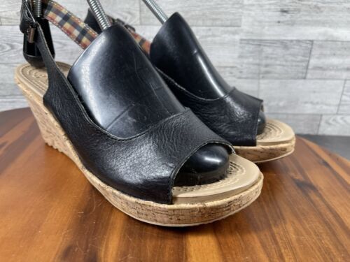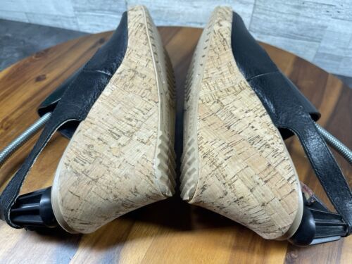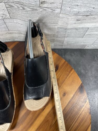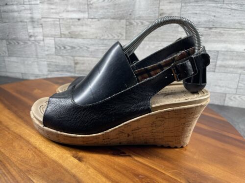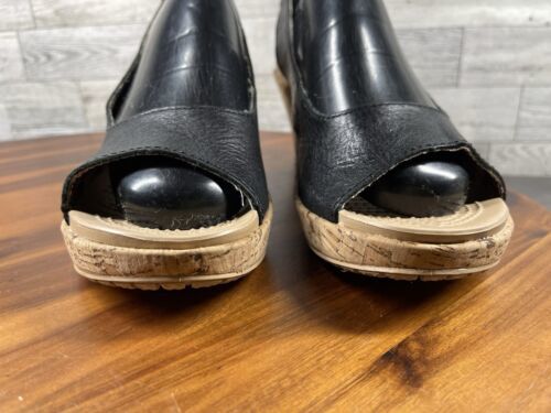 Crocs Sandals Women 9M A-Leigh Shoes Black Leather Wedge Cork Platform Peep Toe