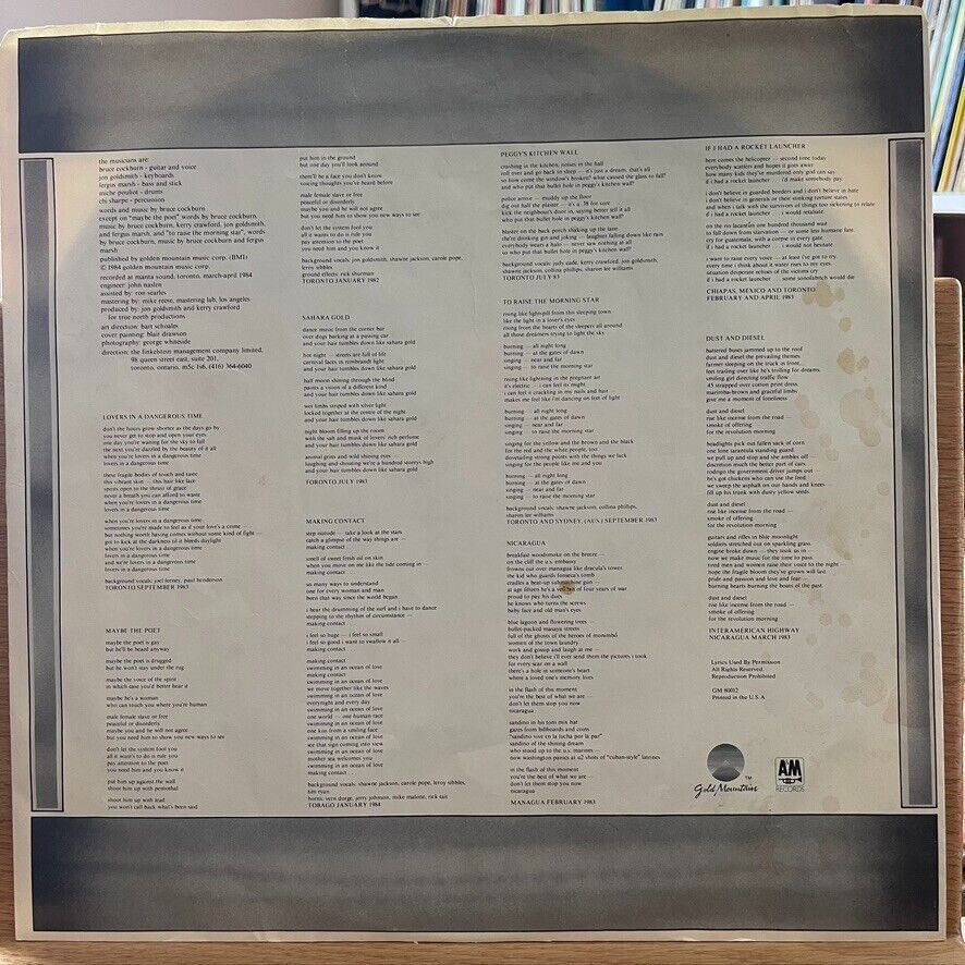 Cockburn wrote the song "If I Had a Rocket Launcher" which reached a high of #88 on the Billboard Hot 100 charts with an associated music video regularly played on MTV. Despite the apparent threat of violence in the lyrics, Cockburn would later state, "this is not a call to arms; this is a cry."