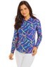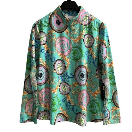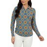 NWT - New With Tags Ladies Womens IBKUL formerly ICIKULS UPF 50+ Debbie Turquoise Multi Long Sleeve Adjustable Polo Golf Tennis Shirt Top - Sizes SMALL MEDIUM
