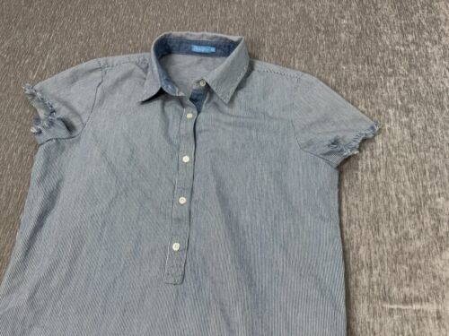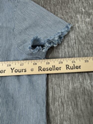 J. McLaughlin Dress Womens XS Blue Arissa Pinstripe Cotton White Frayed Resort