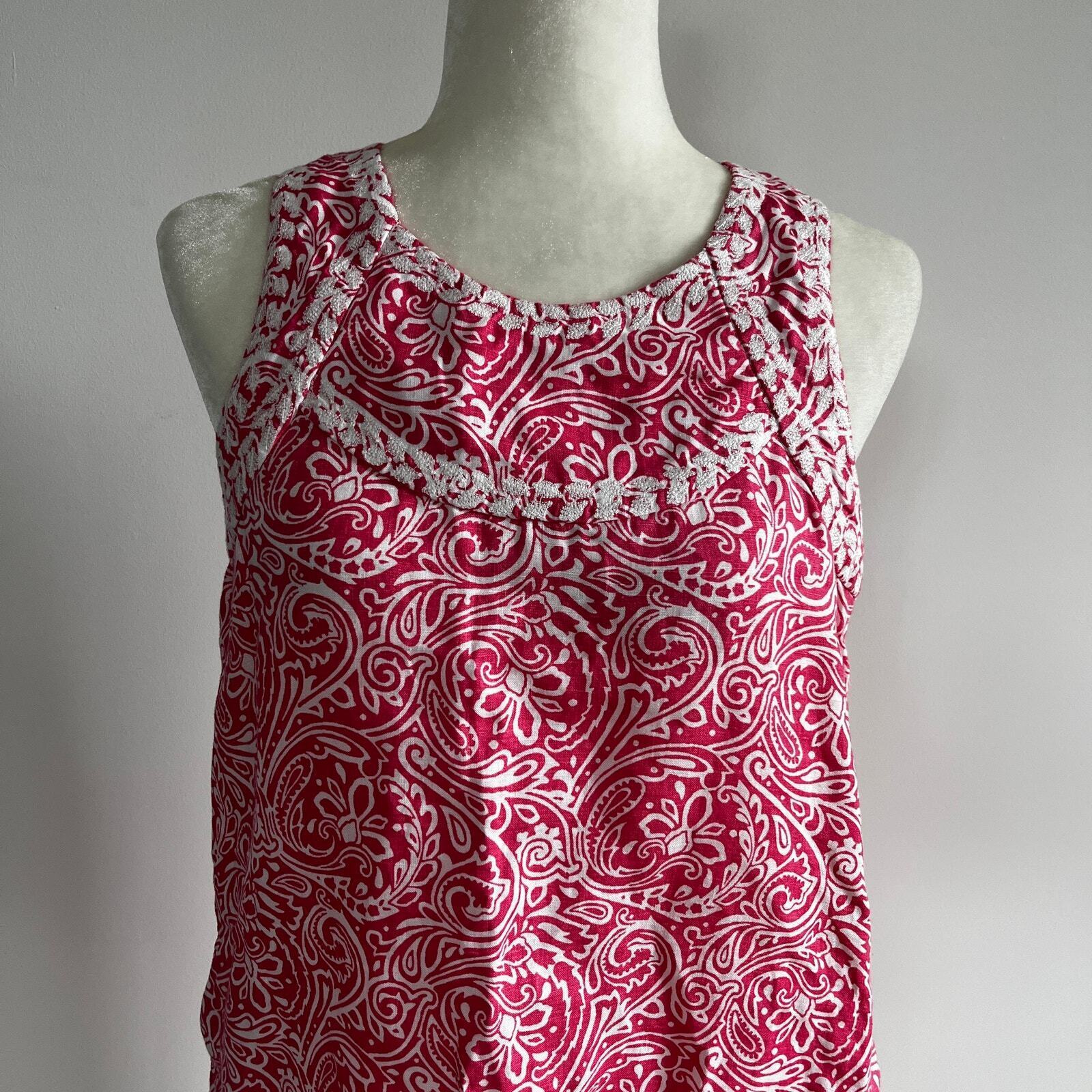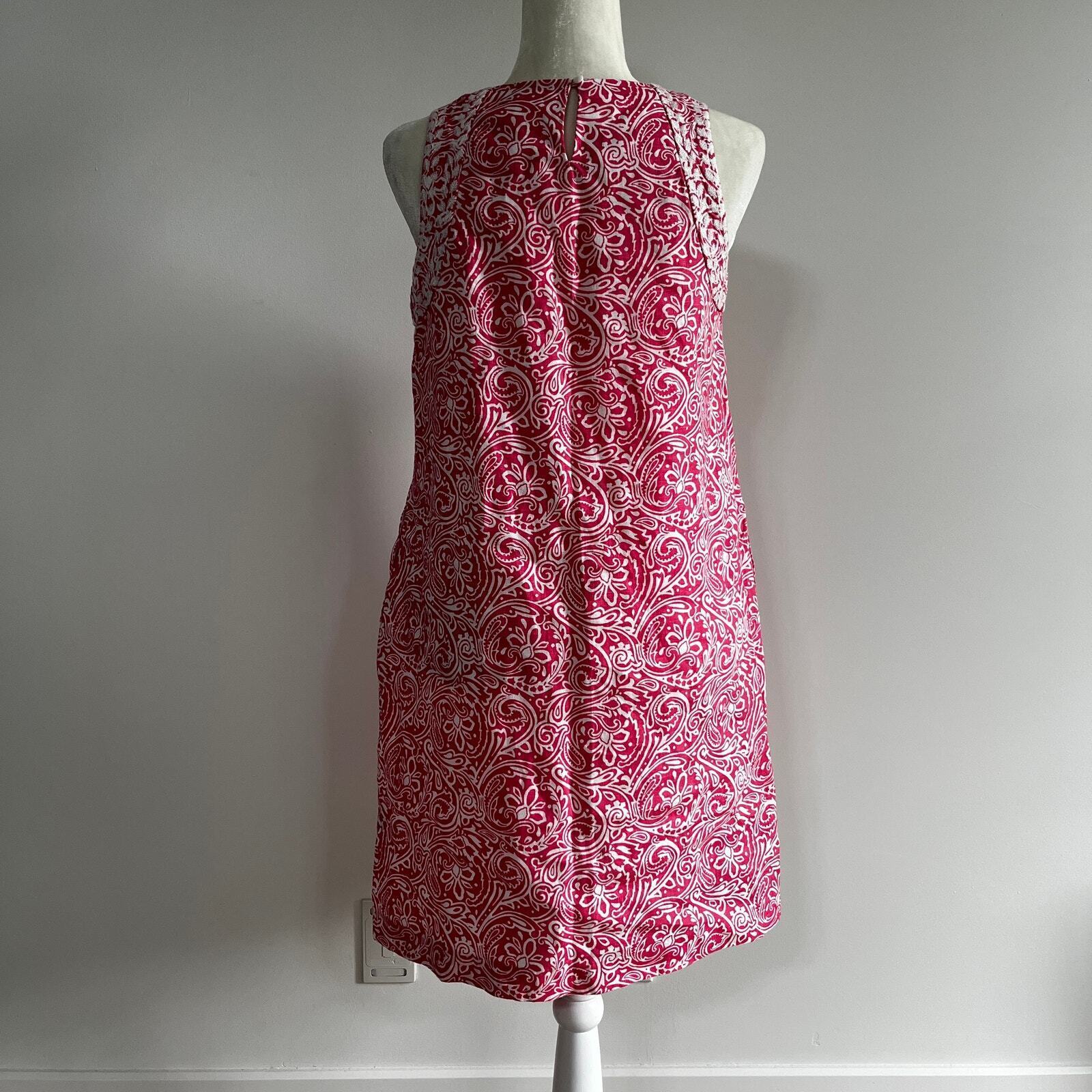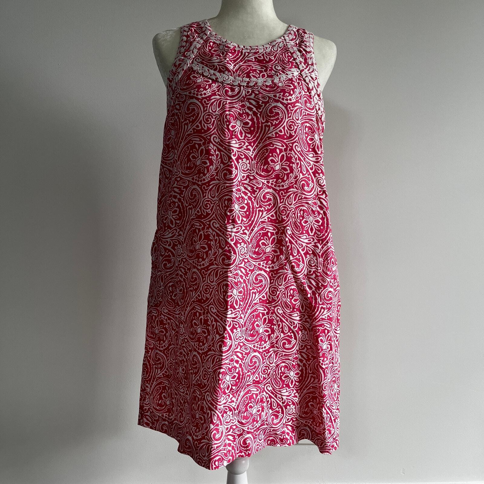 J. McLaughlin Linen Embroidered Sleeveless Shift Dress Pockets Pink Paisley