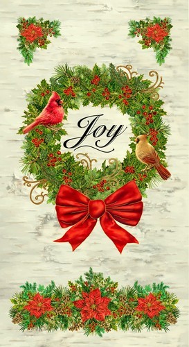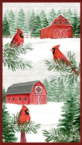 23.5" X 44" Panel Cardinals Winter Wreaths Christmas Farm Cotton Fabric D405.41