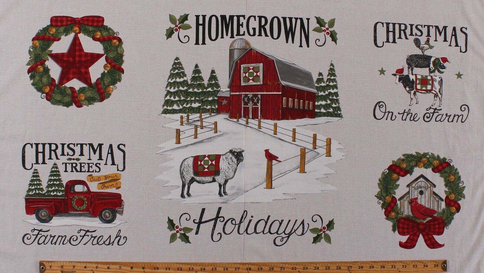 23.5" X 44" Panel Cardinals Winter Wreaths Jingle Bells Christmas Farm Winter Holiday Cotton Fabric Panel (19940-11)