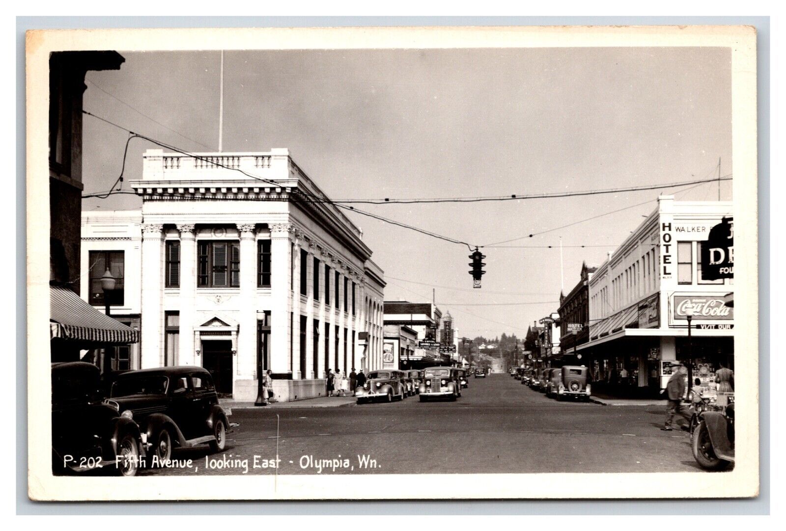 RPPC Fifth Ave Street View Coca Cola Sign Olympia WA Washington UNP Postcard R18