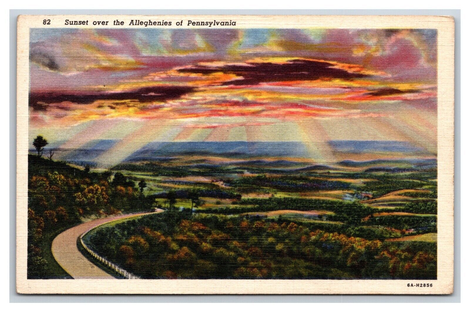 Sunset From Ray's Hill Summit Allegheny Mountains PA UNP Linen Postcard Y11