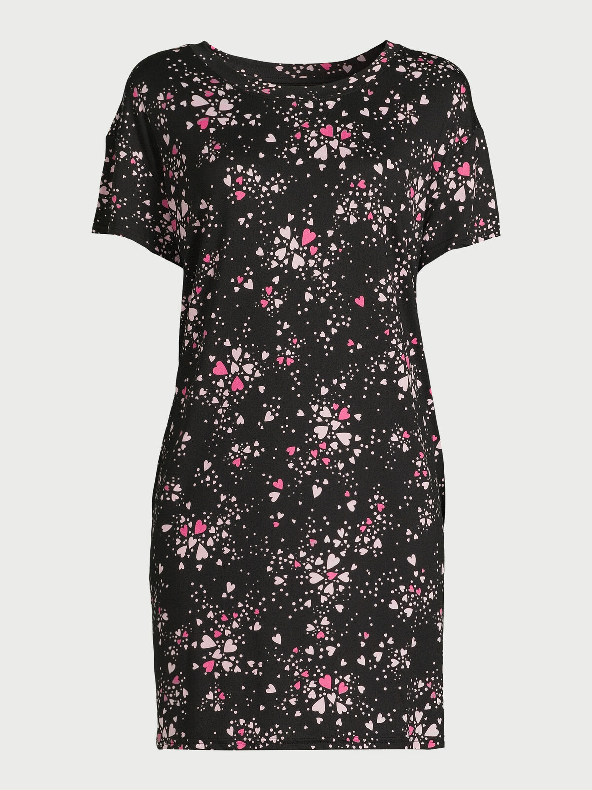 Joyspun Women's Plus Short Sleeve Sleepshirt, Black Soot Heart Size L-XL