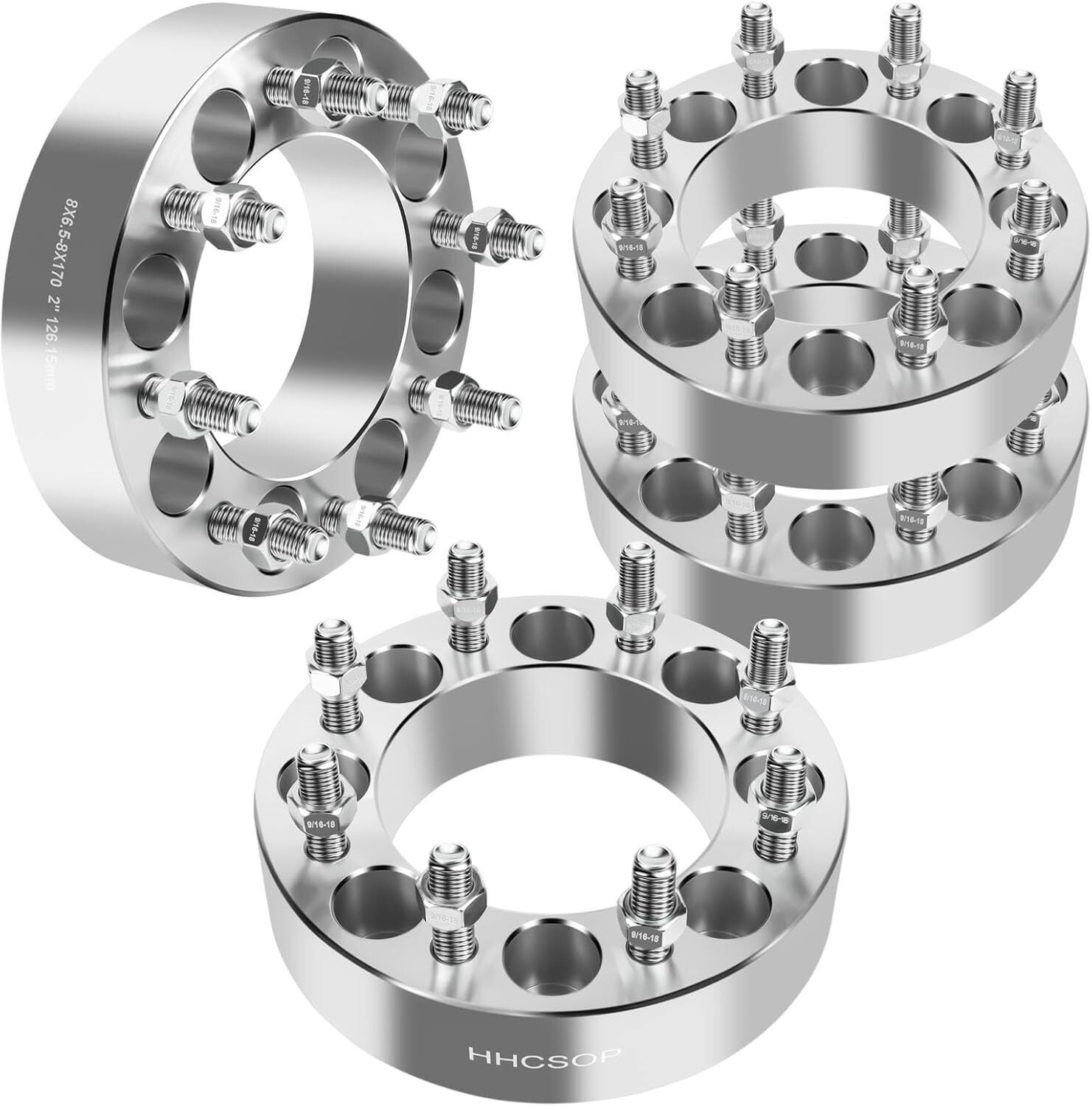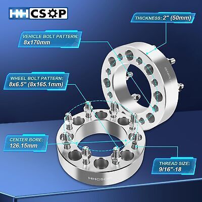 8x6.5 to 8x170 Wheel Spacers 2" (50mm) Bore 126.15mm with 9/16"-18 Studs for 1980-1998 Ford F250 F350 | 1992-2007 Ford E250 E350 | 1995-2010 Dodge Ram 2500 3500, 4PCS 8x165.1 to 8x170 Wheel Adapters