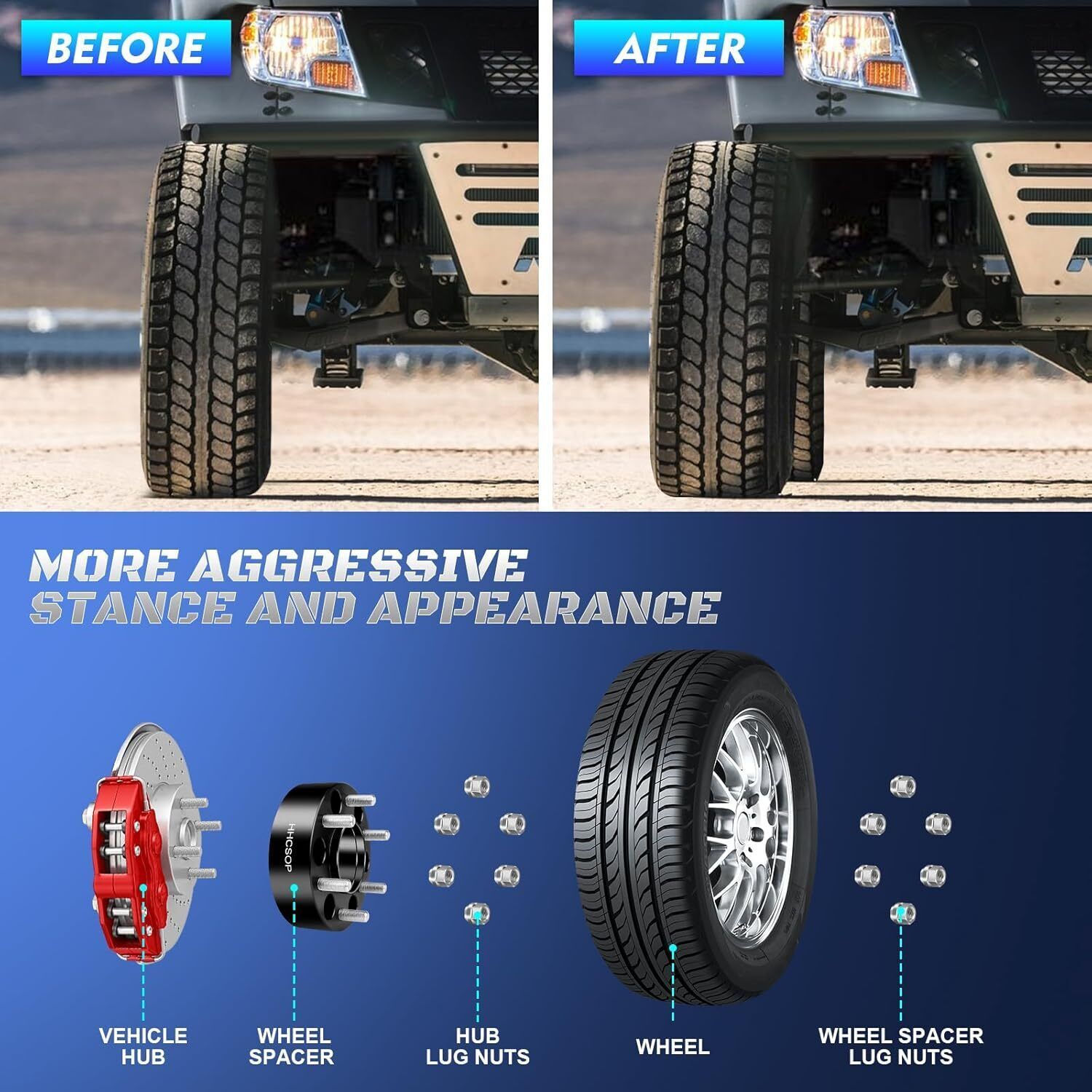 ? Vehicles Fitment: Compatible with 2015-2023 Ford F150, 2015-2023 Ford Expedition, 2015-2023 Ford LOBO, 2015 2016 2017 2018 2019 2020 2021 2022 2023 Lincoln Navigator. ? Specifications: Thickness: 2" (50mm) | Vehicle Bolt Pattern: 6x135mm | Wheel Bolt Pattern: 6x135mm | Center Bore: 87.1mm | Thread Pitch: 14x1.5; Fit for Ford F-150 Expedition 15 16 17 18 19 20 21 22 23. ? High Quality: Forged from 6061-T6 aluminum alloy, CNC automatically machined to ensure high precision and stability, with anodized and heat-treated surfaces to enhance corrosion resistance, and comes with 10.9 grade premium studs. ? Spacer Features: Provide additional clearance between the wheel and hub assembly, thereby improving the vehicle's performance in terms of handling and traction. It will make your vehicle more stable and allow installation of lift/lowering kits and larger traction tires. ? Important Notes: Before purchasing these wheel spacers, please recheck your vehicle compatibility (year/make/model) in the product description. If you have any questions, please contact the customer service team for further assistance.