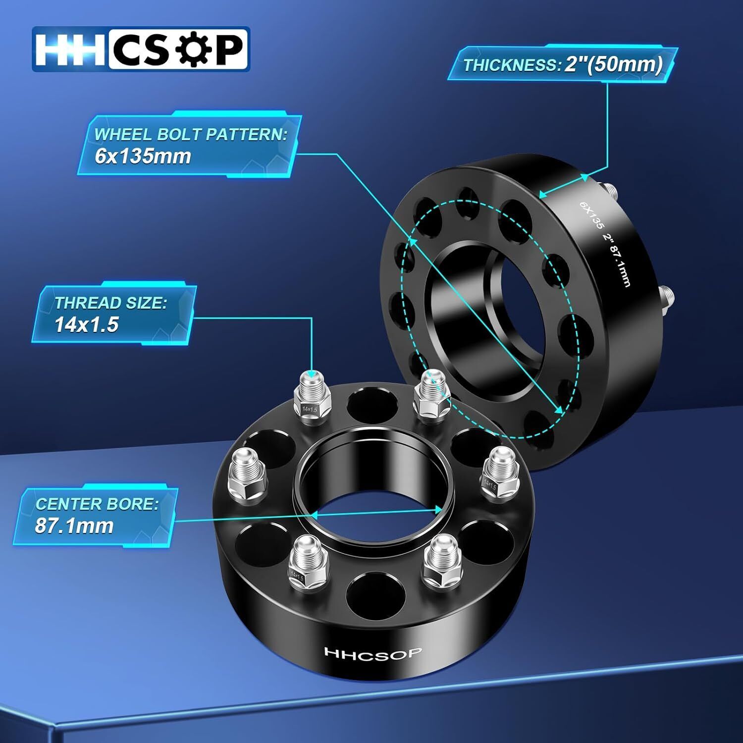 HHCSOP 6x135 Wheel Spacers 2 inch for Ford F150 Expedition Lobo 2015 2016 2017 2018 2019 2020 2021 2022 2023, Lincoln Navigator 2015-2023, 4PCS Wheel Adapters Hub Bore 87.1mm 14x1.5 Studs