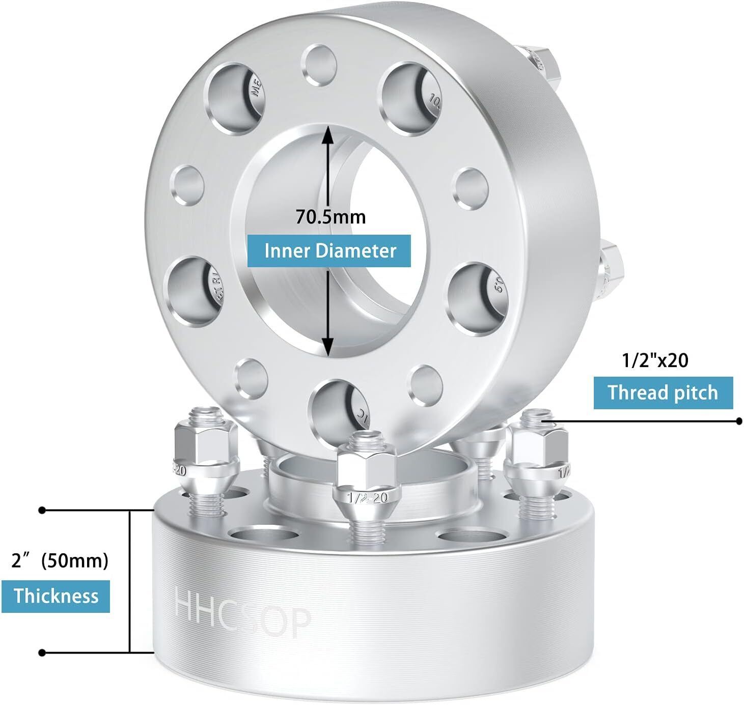 HHCSOP 5x4.5 Wheel Spacers 2 inch, Compatible with Ford Mustang Ranger Edge Explorer Crown Victoria | Lincoln Aviator Town Car Mark 7, 2PCS 5x114.3 Wheel Adapters Hub Bore 70.5mm with 1/2" x20 Studs