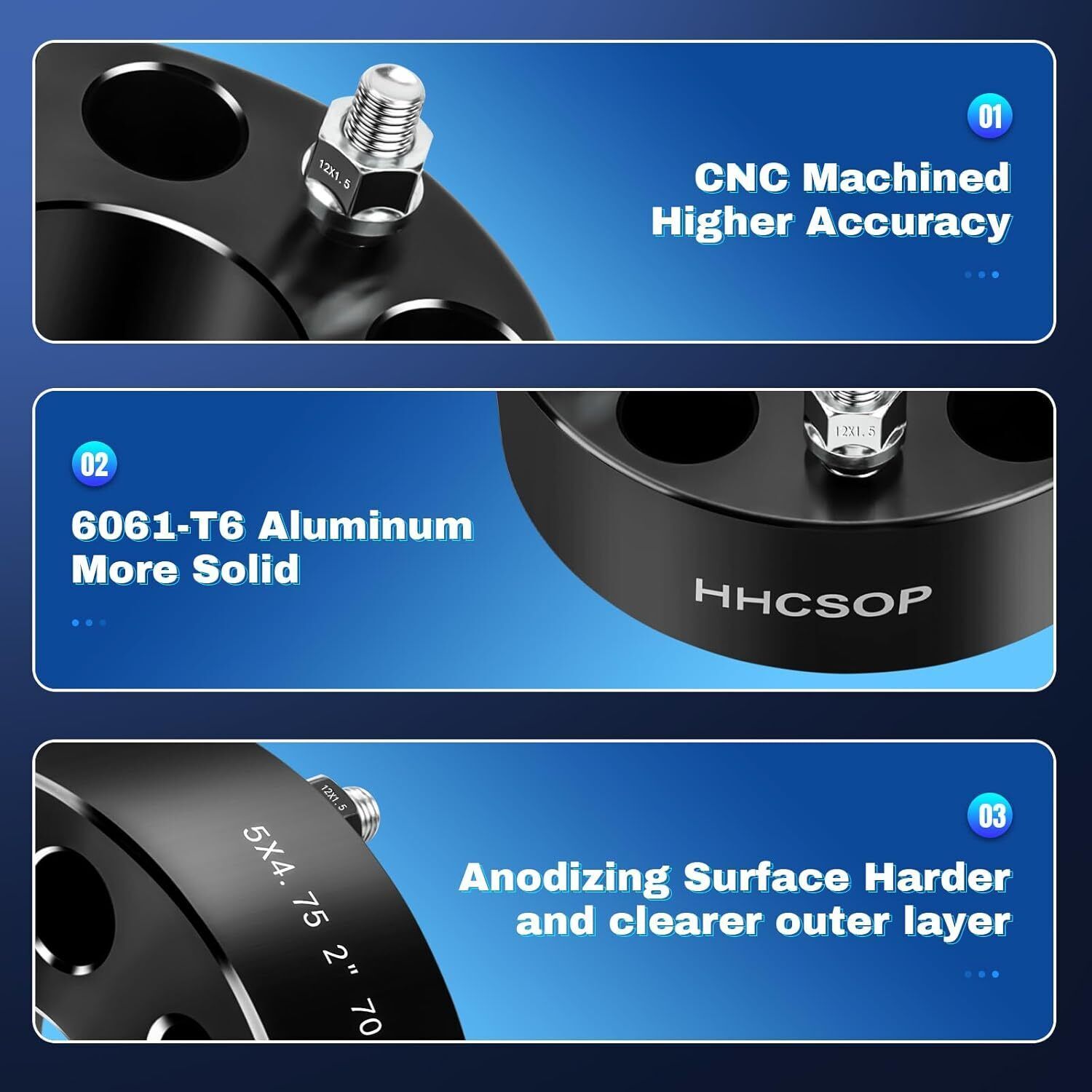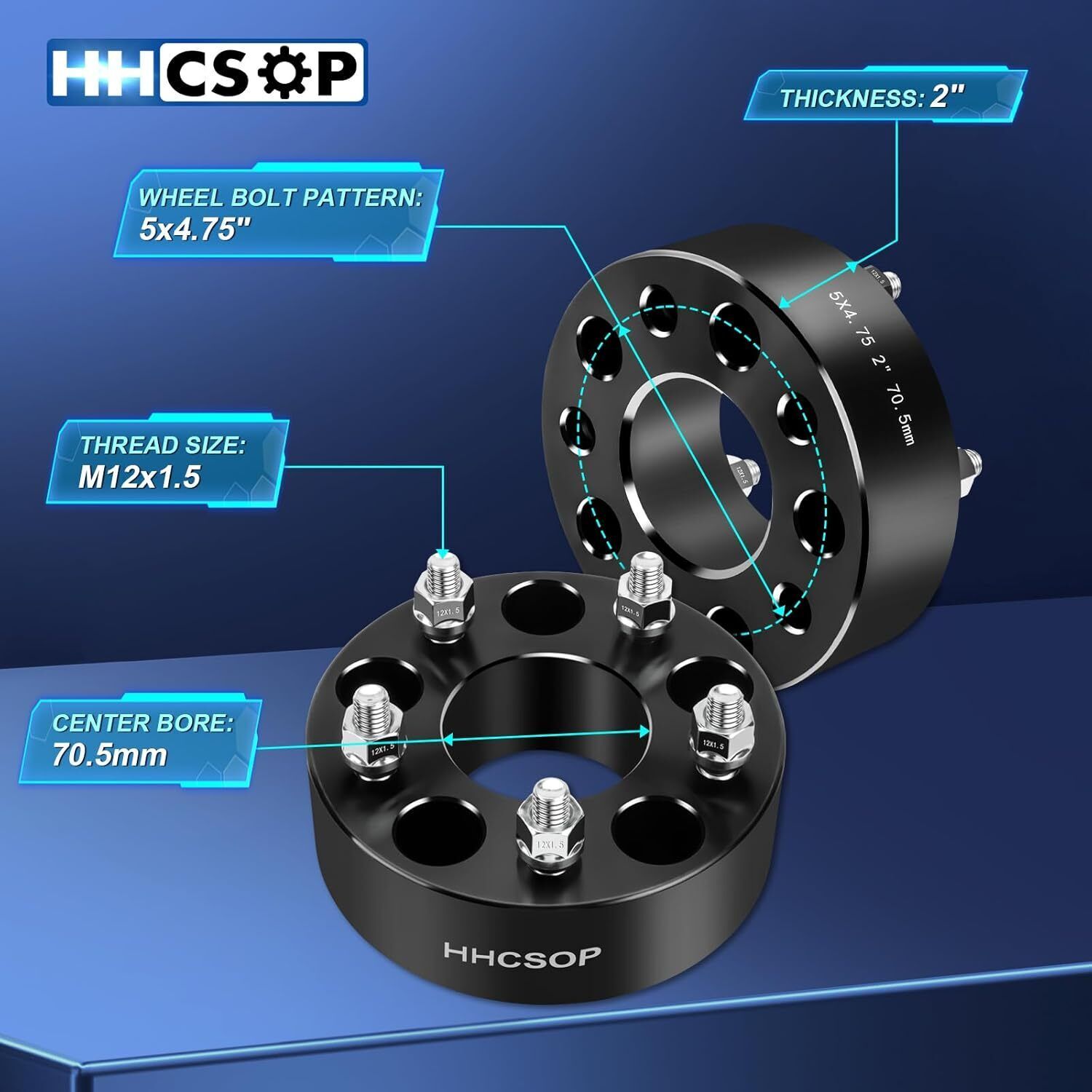 ? 2PCS Wheel Spacers: Thickness: 2" (50mm) | Vehicle Bolt Pattern: 5x4.75 (5x120.65mm) | Wheel Bolt Pattern: 5x4.75 (5x120.65mm) | Center Bore: 70.5mm | Thread Pitch: M12x1.5. ? Chevy Wheel Adapters: Compatible with 2006-2011 Blazer, 1993-2002 Camaro, 1984-2019 Corvette, 1988-2004 S10, 1988-1994 S10 Blazer. ? GMC Wheel Adapters: Compatible with 1982-1991 GMC S15, 1982-2005 GMC Jimmy, 1991 1992 1993 1994 1995 1996 1997 1998 1999 2000 2001 2002 2003 2004 GMC Sonoma. ? Cadillac Pontiac: Compatible with 1979-1985 Cadillac Eldorado, 2003-2009 Cadillac XLR, 1982 83 84 85 86 87 88 89 90 91 92 93 94 95 96 97 98 99 00 01 02 Pontiac Firebird. ? High Quality: Forged from 6061-T6 aluminum alloy, CNC automatically machined to ensure high precision and stability, with anodized and heat-treated surfaces to enhance corrosion resistance, and comes with 10.9 grade premium studs. ? Spacer Features: Provide additional clearance between the wheel and hub assembly, thereby improving the vehicle's performance in terms of handling and traction. It will make your vehicle more stable and allow installation of lift/lowering kits and larger traction tires. ? Important Notes: Before purchasing these wheel spacers, please recheck your vehicle compatibility (year/make/model) in the product description. If you have any questions, please contact the customer service team for further assistance.