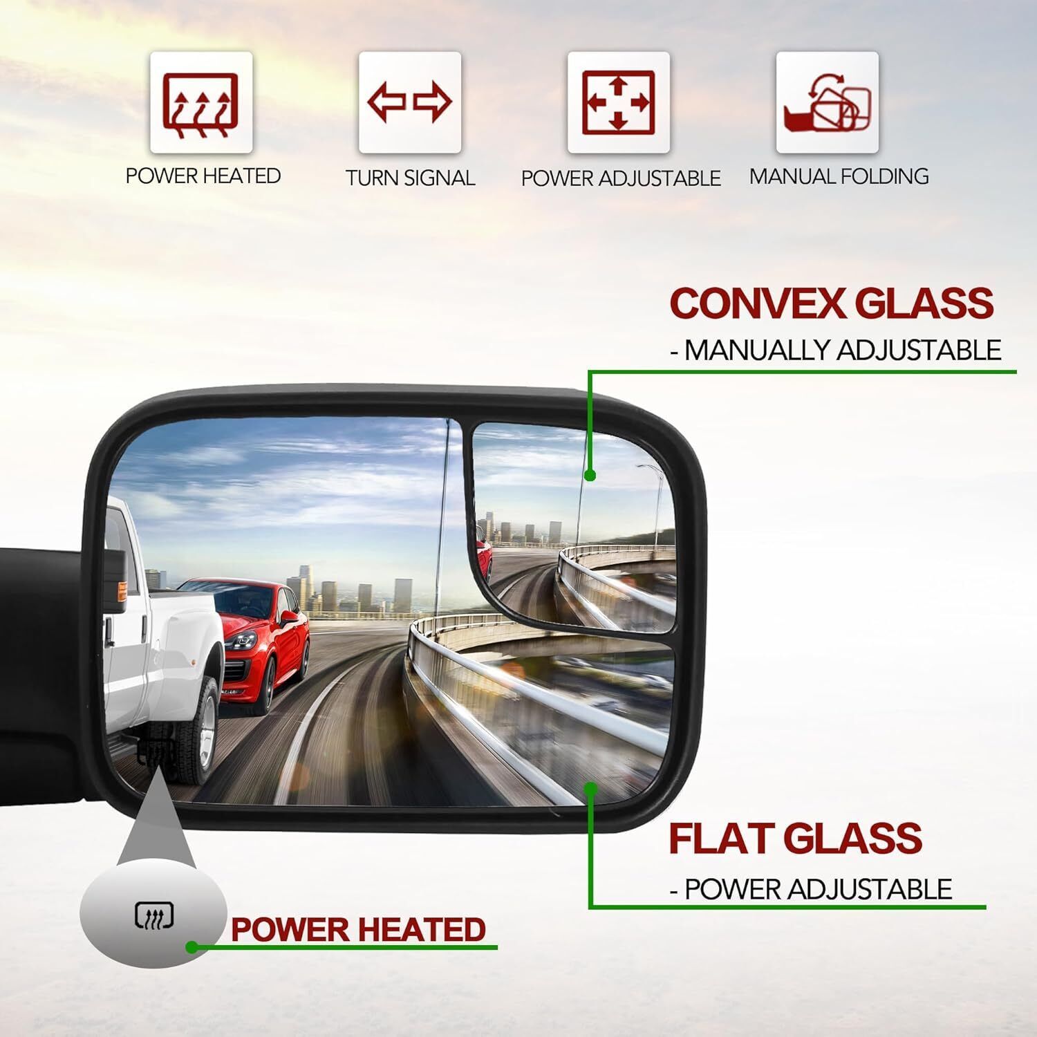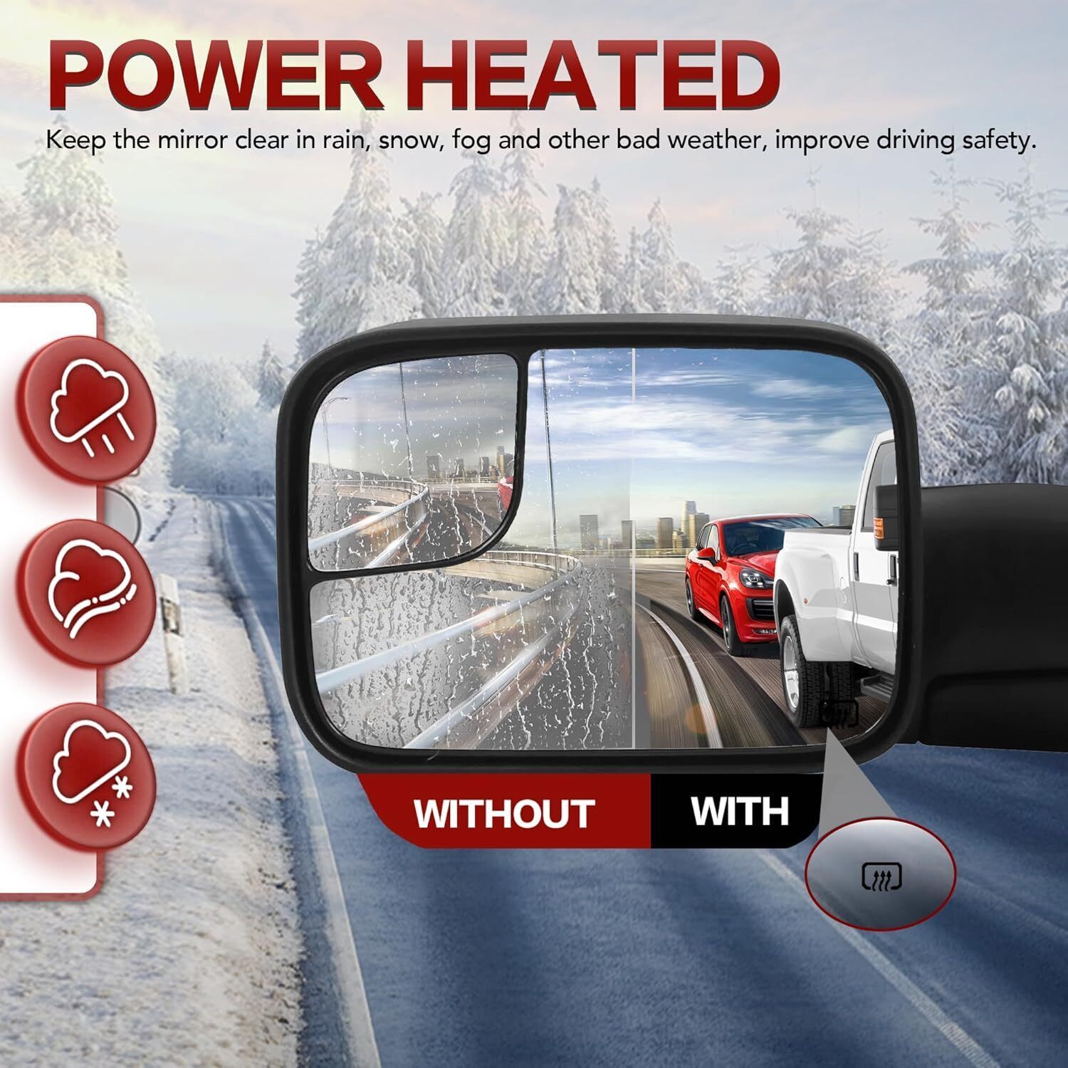 2PCS Power Heated Tow Mirrors LED Ambr Turn Signal Lamp Compatible for 2005-2015