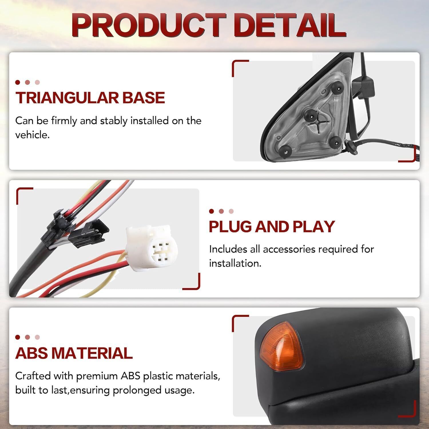 With LED turn signal light, which adding modern style to your vehicle. Electric heating removes rainwater for a clear view.