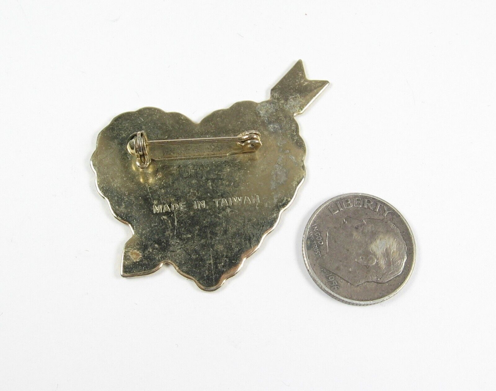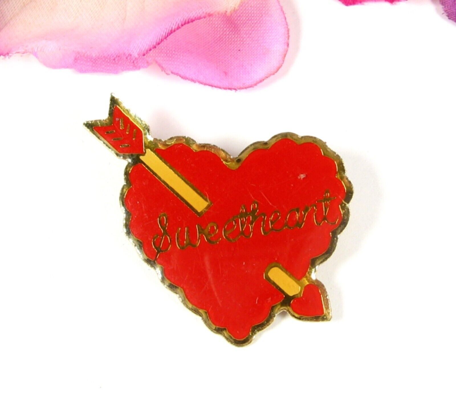 Vintage VALENTINES Day SWEETHEART HEART PIN Red Enamel Arrow Brooch Goldton Love