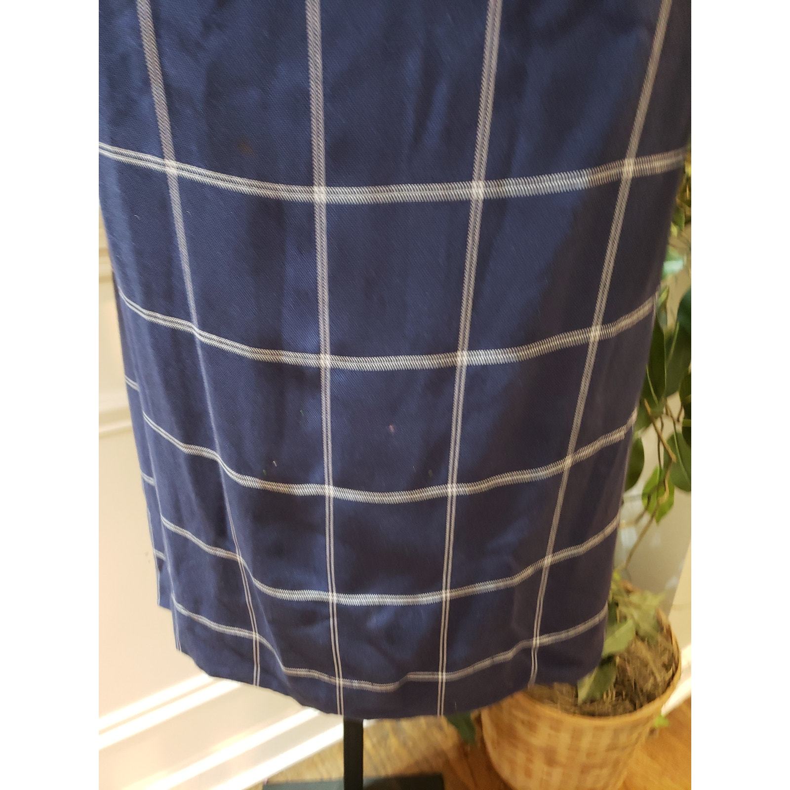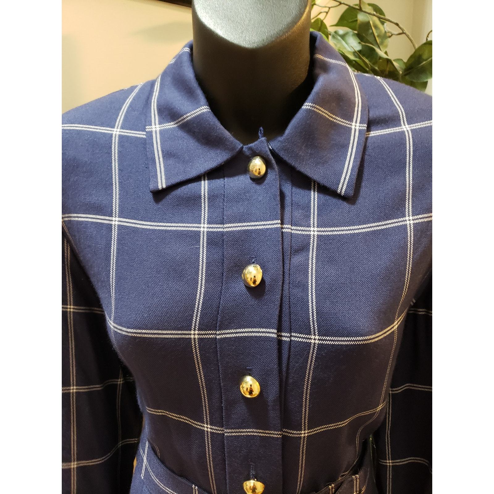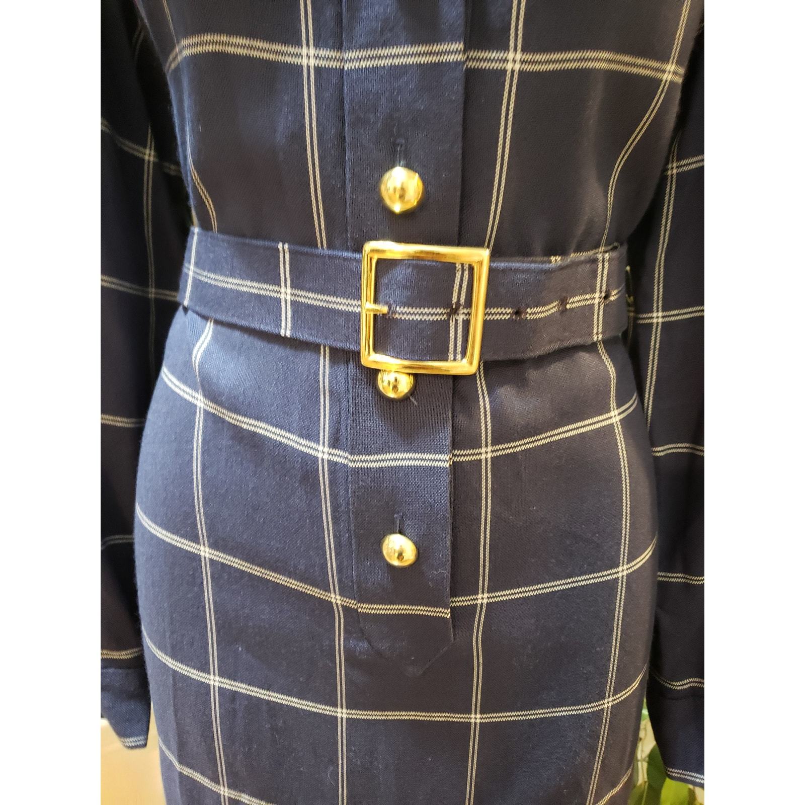 Vintage Henry Lee Shirt Dress Size 10 Navy Check Belted Long Sleeve Button Front