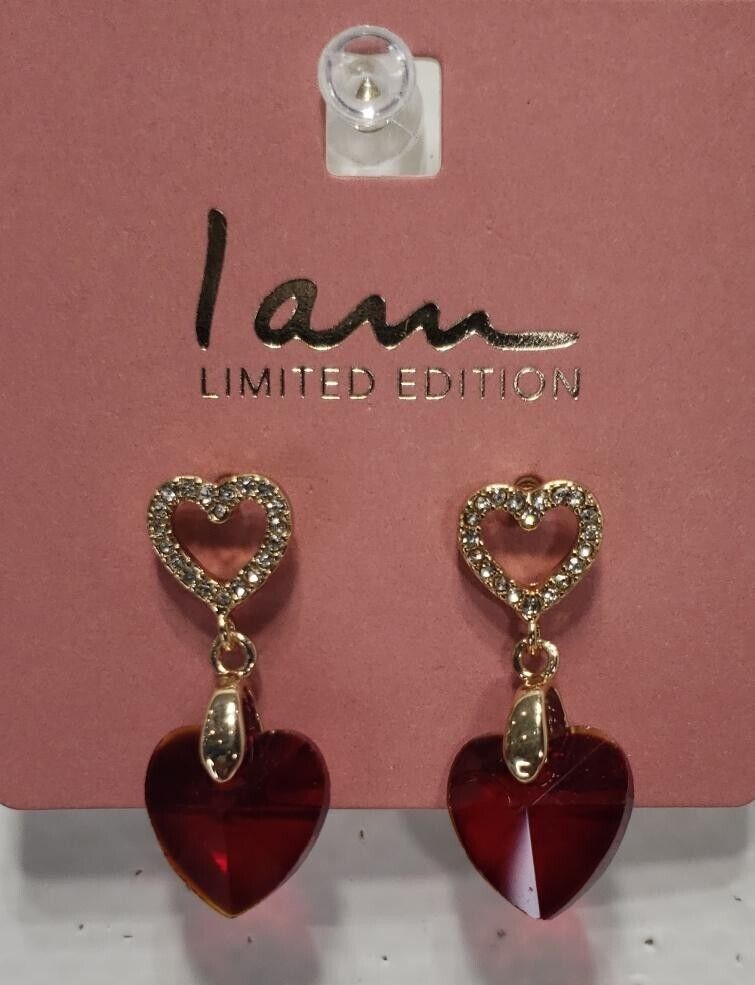 I Am Limited Edition Valentine Love Earrings Gold/Red 1 Pair