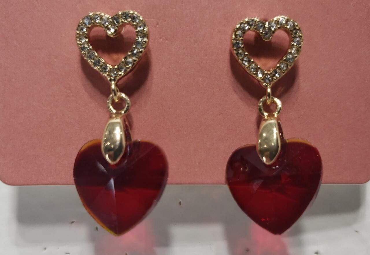 Elevate your accessory game with these striking gold and red Valentine Love Earrings from The Limited.