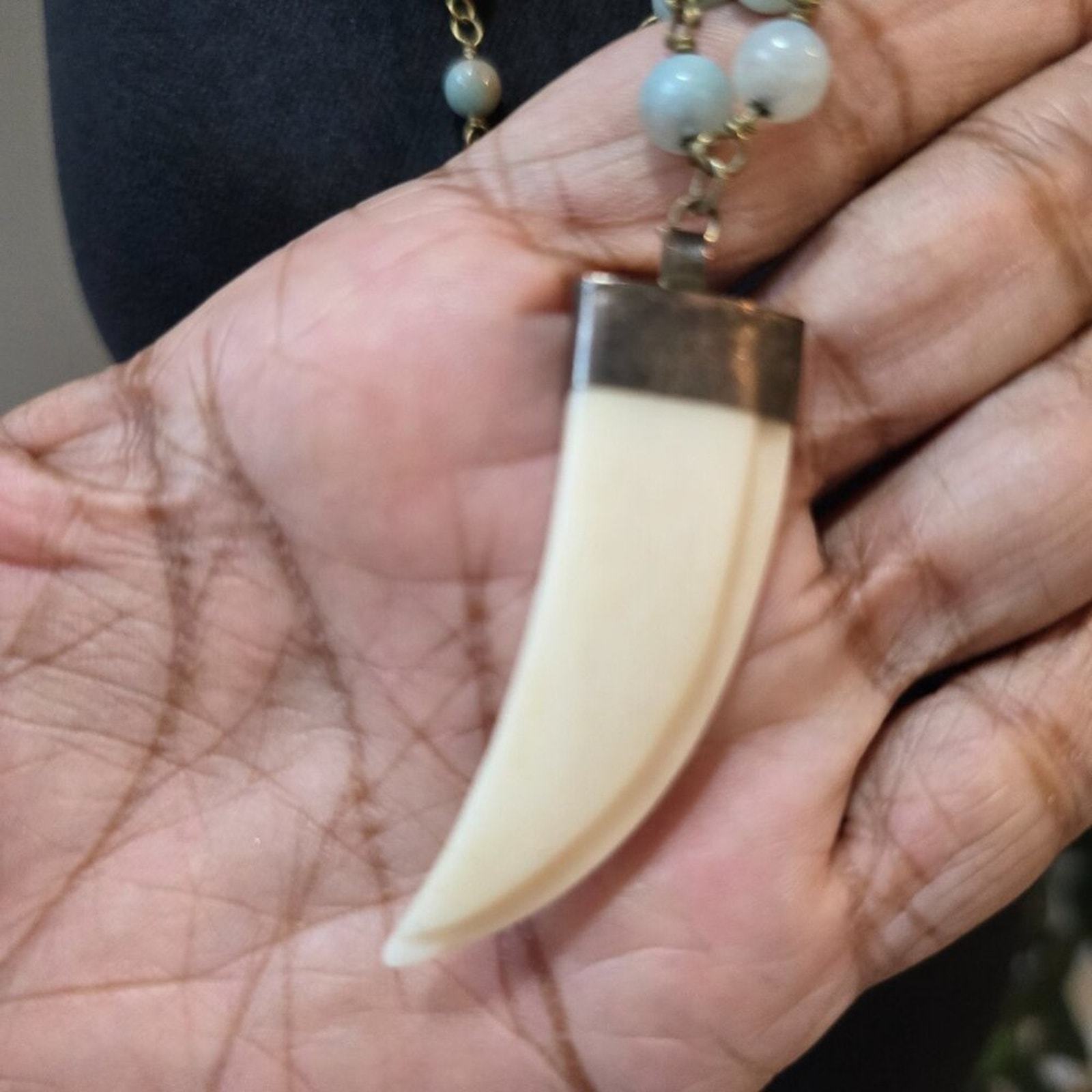 Womens Gold Tone Beaded Linked Chain White Knife Pendant Necklace Jewelry