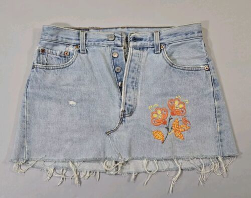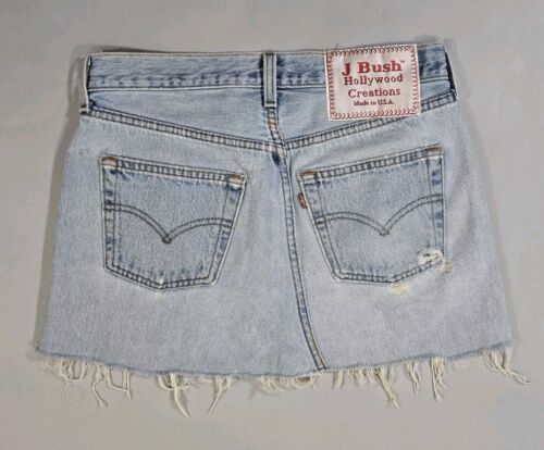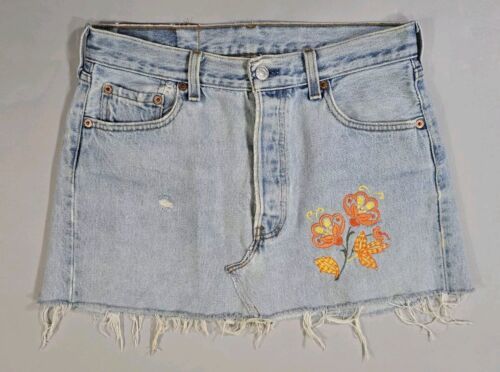 J Bush Hollywood Creations Distressed Embroidered Mini Skirt 29 Reworked Levis