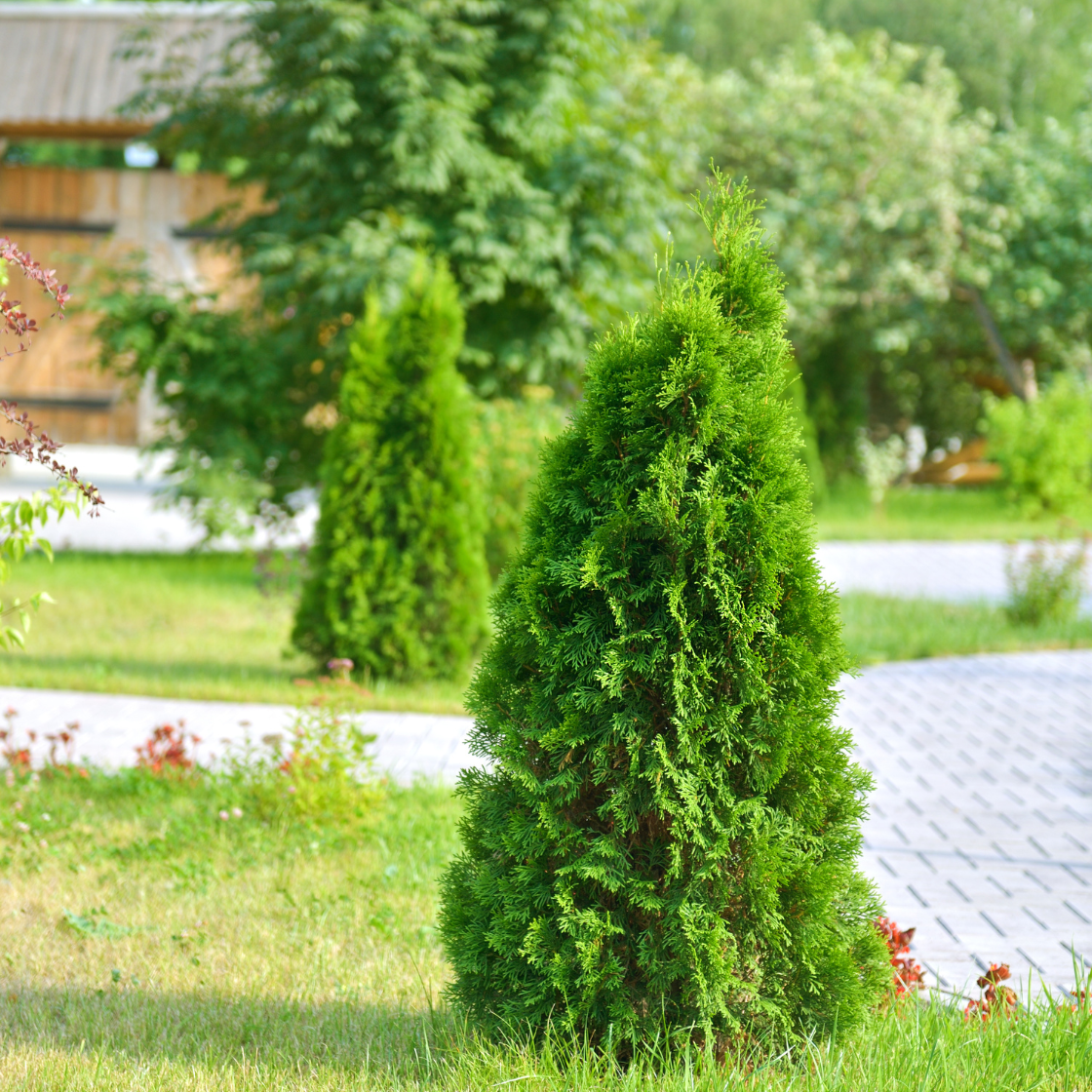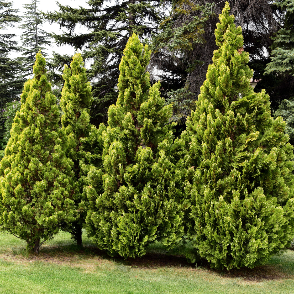 - Evergreen tree with a conical shape and scale-like foliage