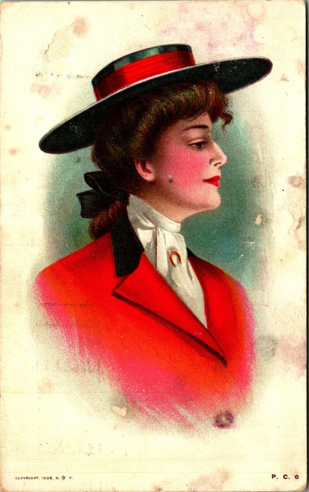 F Earl Christy Artist-Signed 1912 Glamour Woman Red Hunting Garb 1912 Postcard