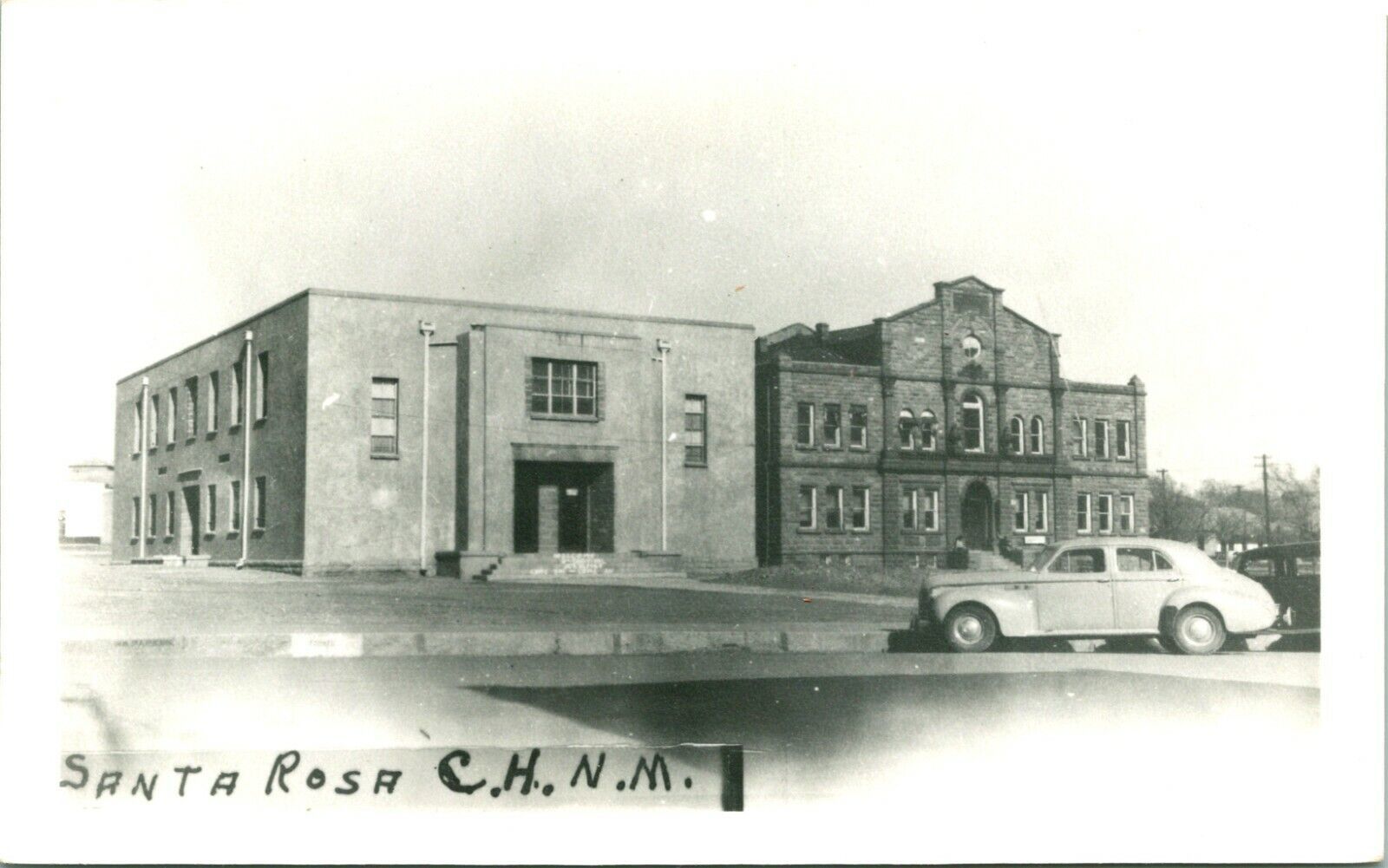 Vtg RPPC 1940s Santa Rosa New Mexico NM Court House Street View w Car UNP