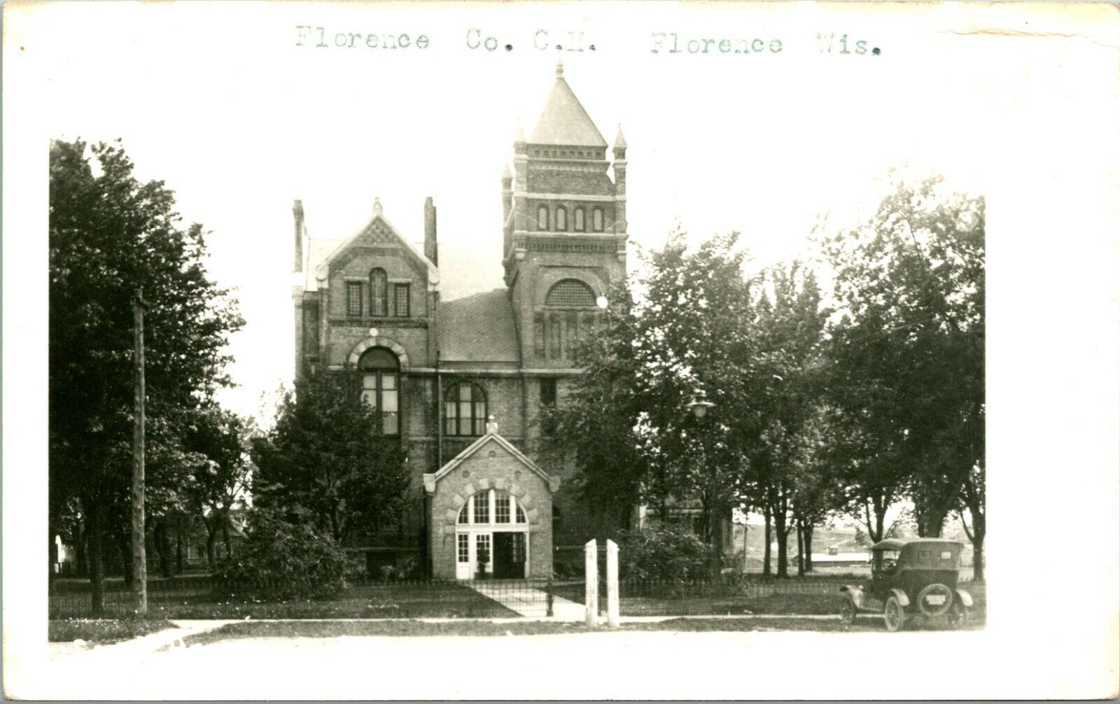 Vtg Postcard RPPC 1940s Florence Wisconsin WI Florence County Court House UNP