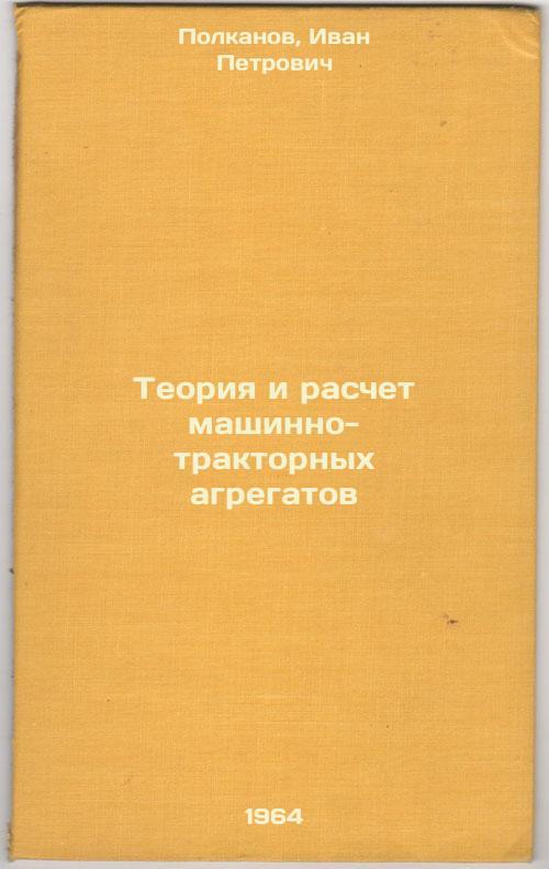 Short description: In Russian. Polkanov, Ivan Petrovich. Theory and Calculation of Machine and Tractor Units. Moscow: Machine Building, 1964. Teoriya i raschet mashinno-traktornykh agregatov. In Russian /The theory and calculation of machinery and tractors . The image is provided for reference only. It may reflect condition of one of the available copies or only help in identifying the edition. Please feel free to contact us for a detailed description of the copies available. SKU6457727