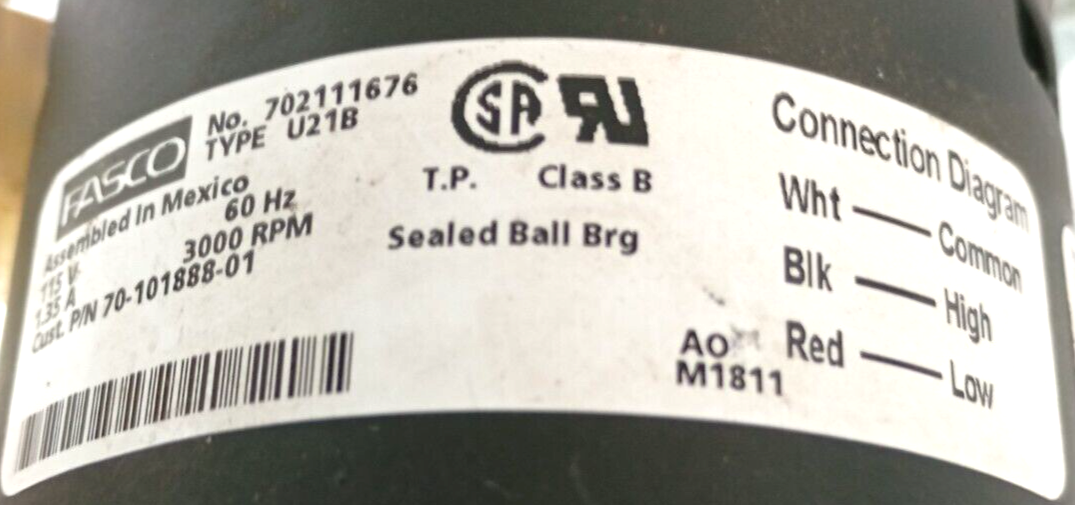 This is FASCO 702111676 U21B Draft Inducer Blower Motor Assembly 70-101888-01 115V 3000RPM used part.