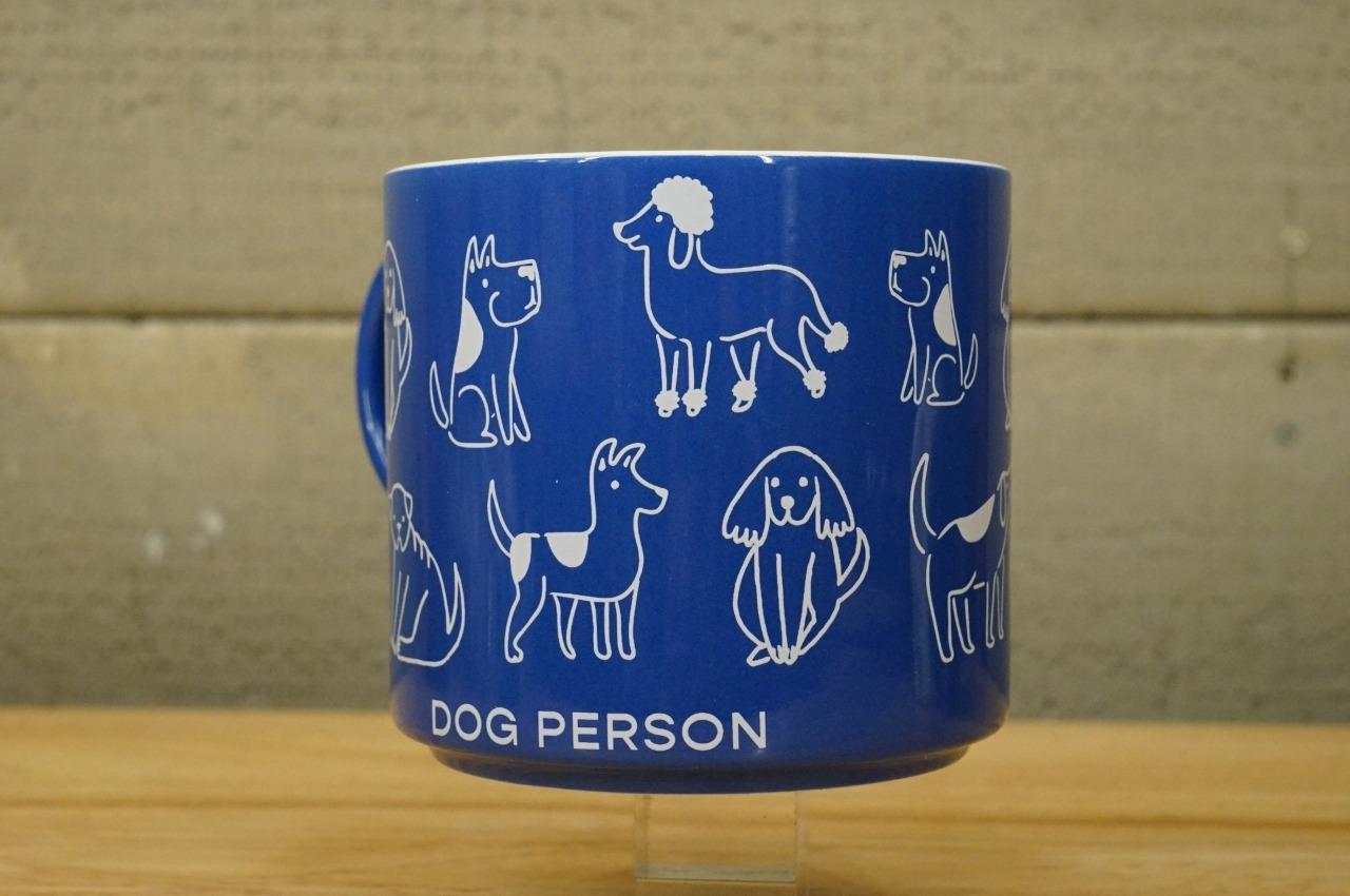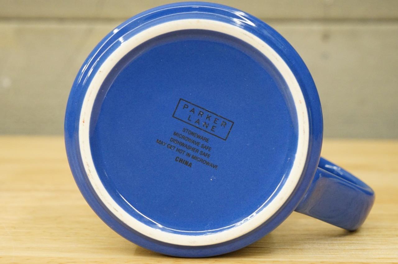 Parker Lane White Cartoon Illustrated Dog Person Blue Coffee Cup Mug. Measures 3-5/8" tall. Opening Diameter is 3-7/8" No smoke or pet odors.