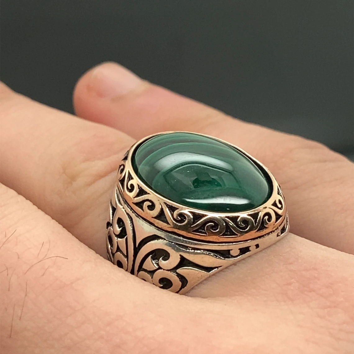 Solid 925 Sterling Silver Natural Malachite Gemstone Unique Turkish Men's Ring