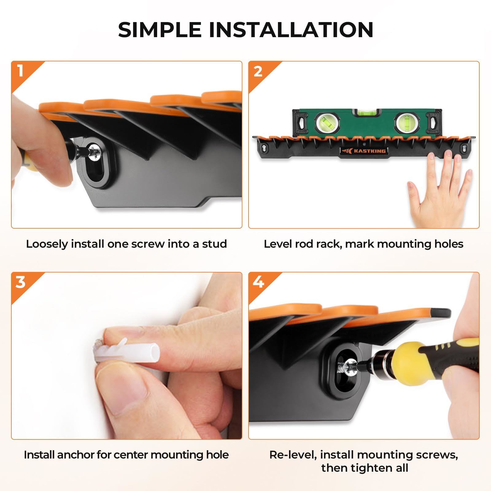 KEY FEATURES : Store up to 15 fishing rods or fishing rod and reel combos in less than 18? of wall space, Innovative Patented Design (U.S. Patent No.7,237,685) fishing pole holder is easy to use, Easy installation with only 3 screws