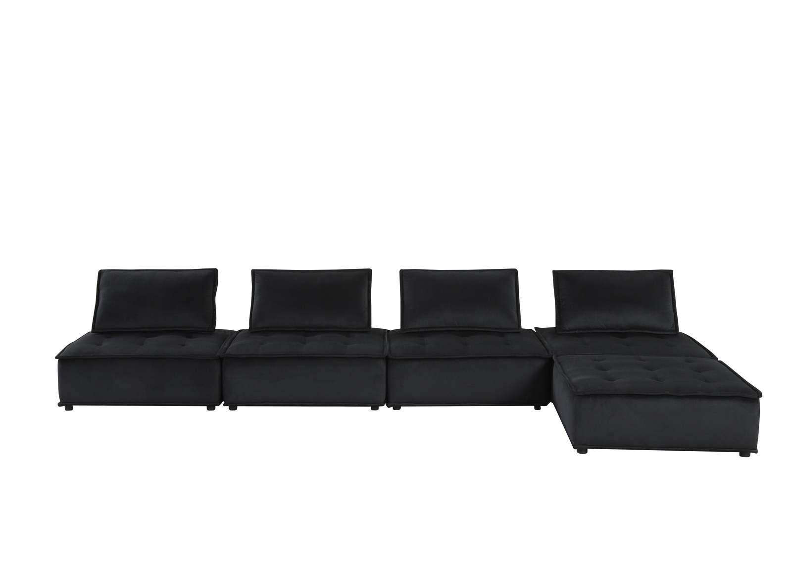 Anna Black Velvet 5-Pc Sectional Sofa & Ottoman
