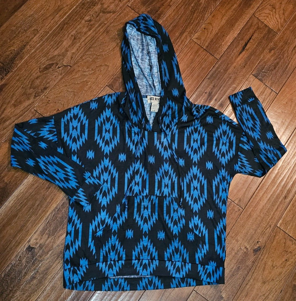 Lightweight Red River Outfitters Brand Hoodie shirt Southwestern Pattern Blue/Black S4 or S5